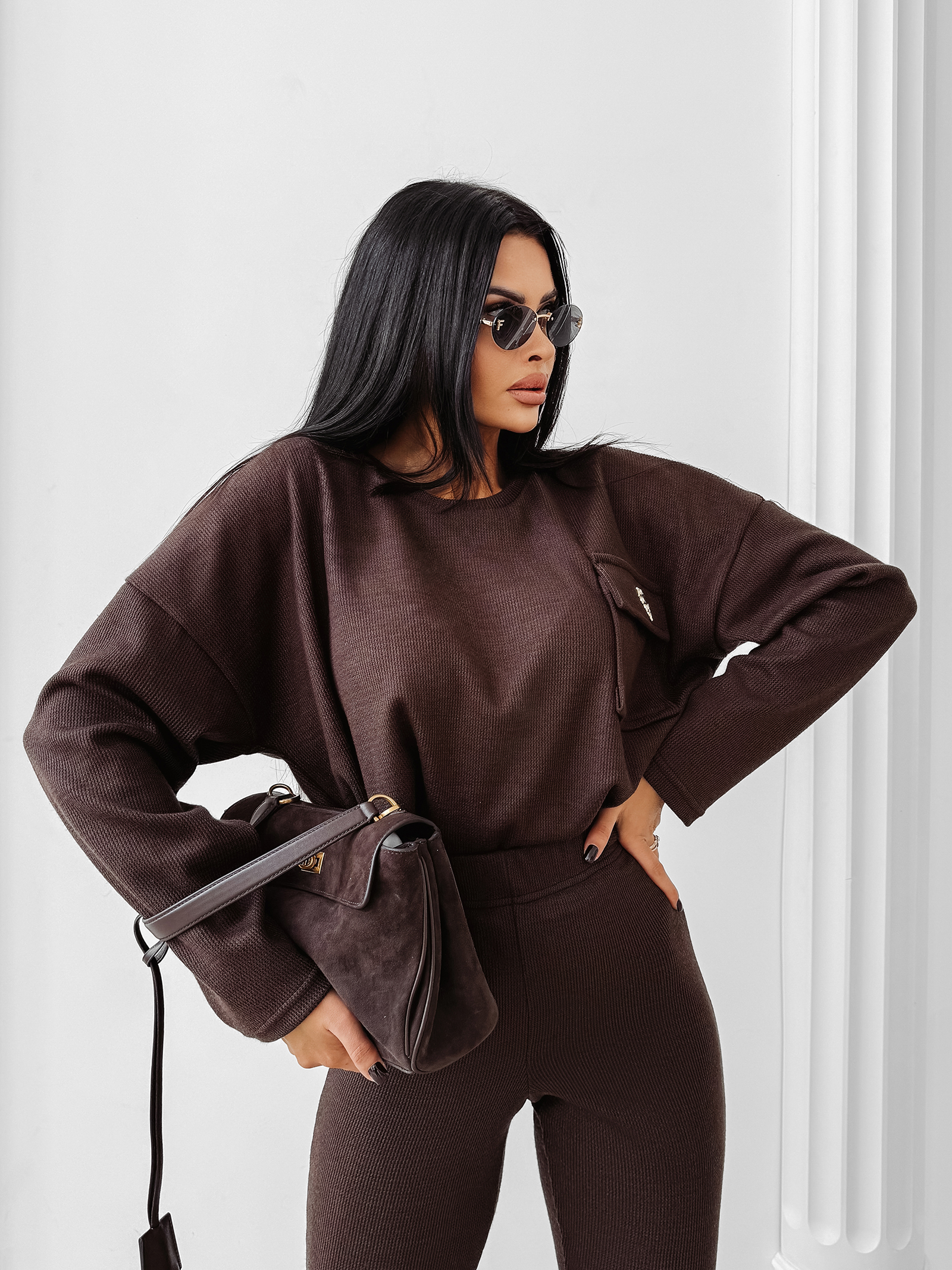 Komplet damski OLAVOGA AURIC brązowy – wygoda i styl w luksusowym wydaniu