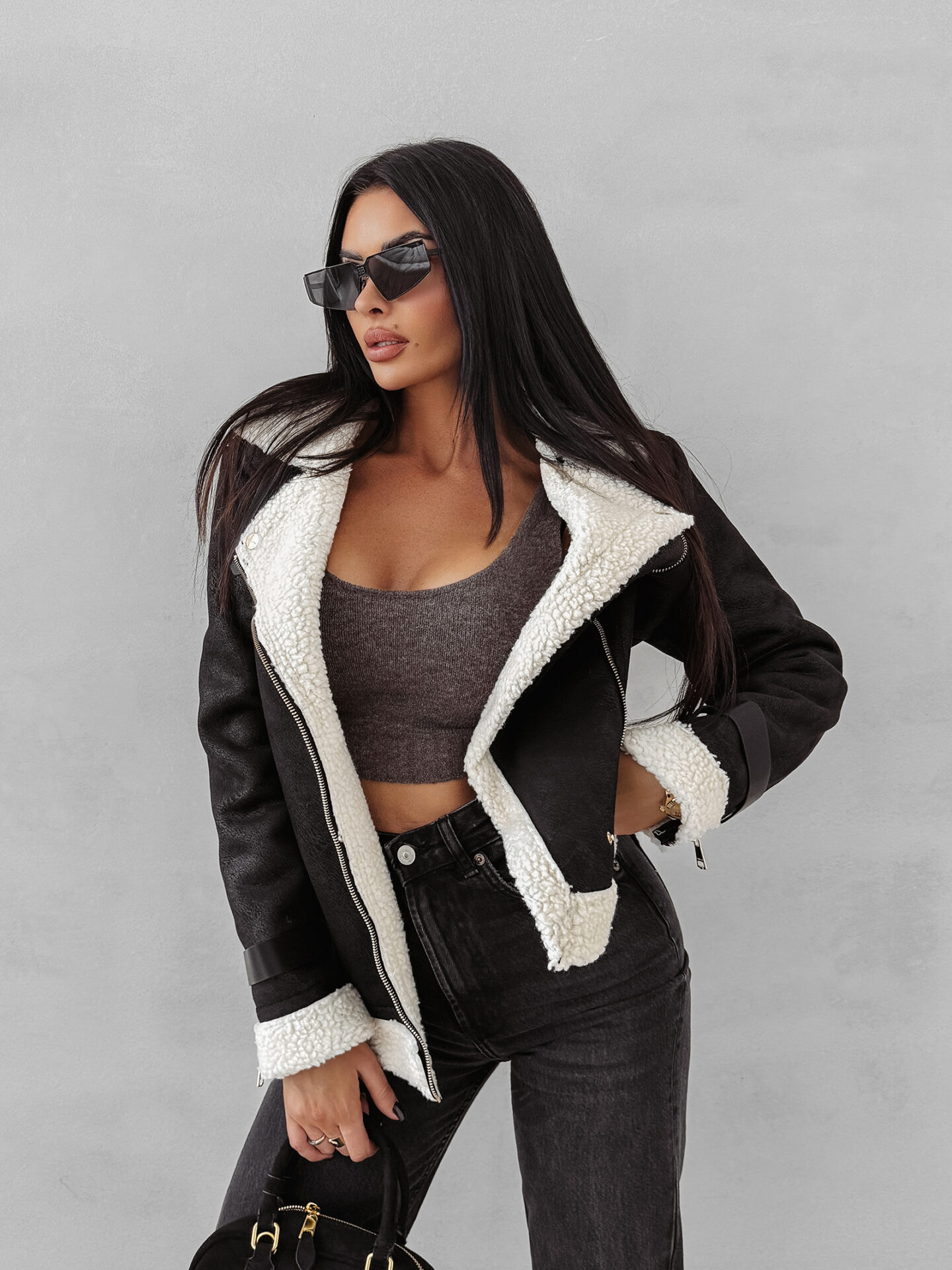 Kożuszek damski OLAVOGA SIIN czarny – miękkość, styl i luksus w codziennym wydaniu