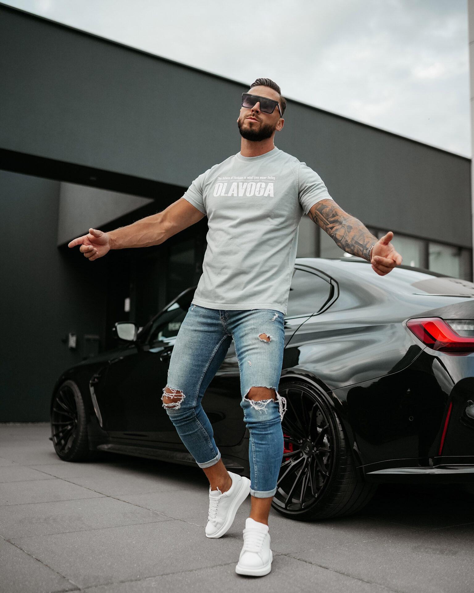 Wybierz T-shirt męski OLAVOGA ZOAN jasnoszary, jeśli szukasz ubrania, które łączy nowoczesny styl, perfekcyjny krój i najwyższą jakość materiału. To idealny wybór do codziennych stylizacji – od streetwearu po elegancki minimalizm.