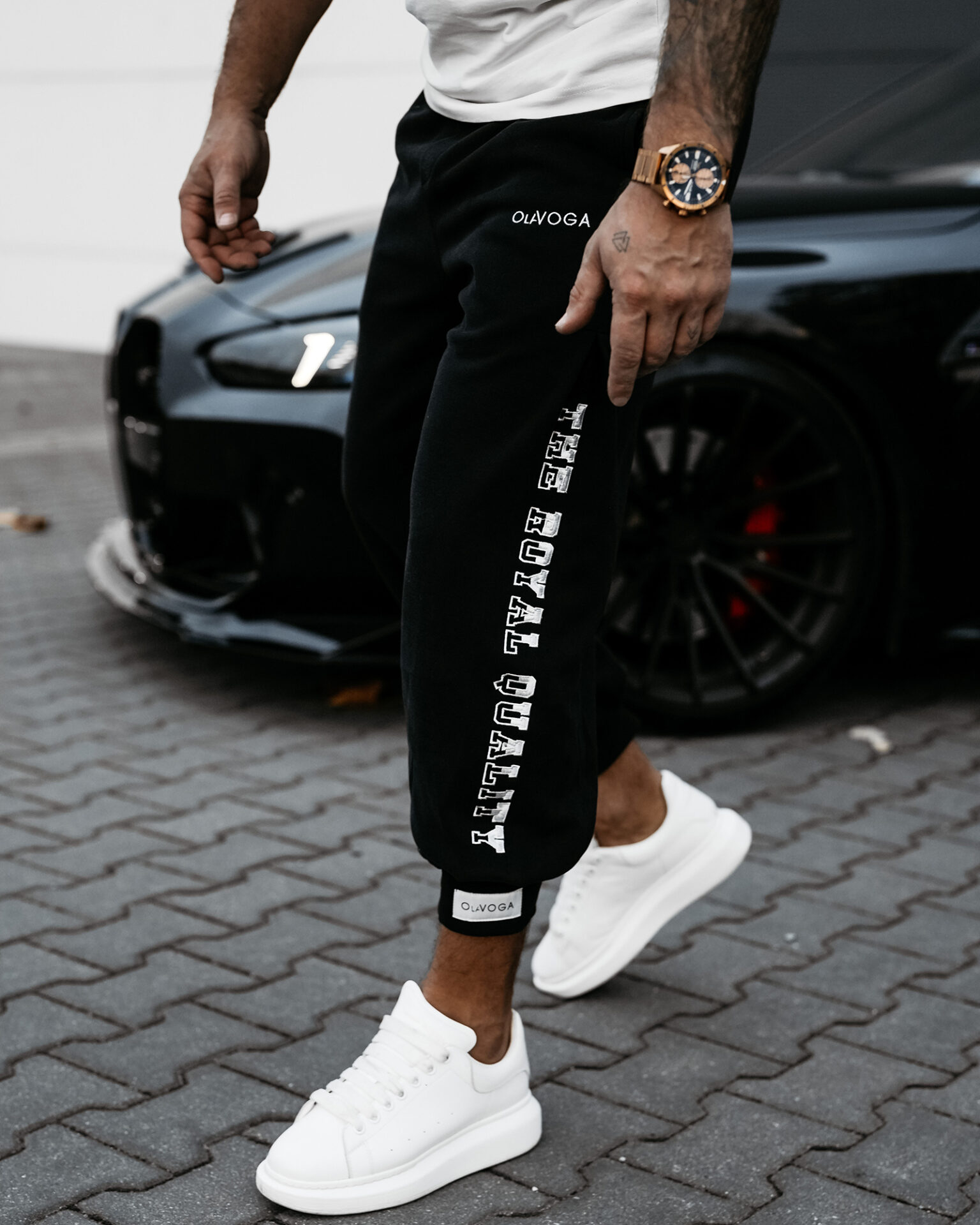 Dodatkowo, na jednej z nogawek znajduje się haftowany napis “THE ROYAL QUALITY”, zabezpieczony dodatkowym materiałem, co stanowi nie tylko stylowy detal, ale i dowód dbałości marki o najwyższą jakość wykonania.