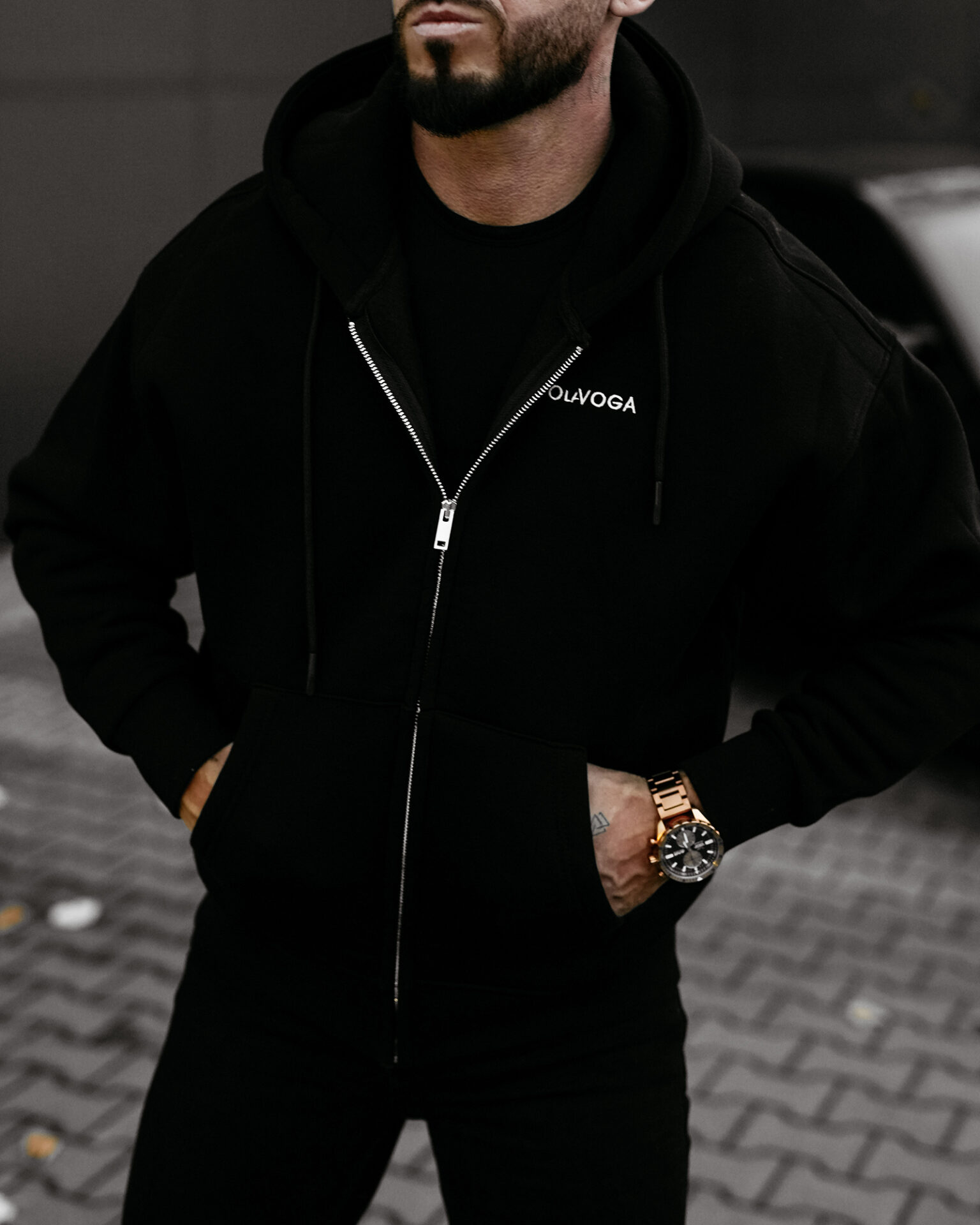 Bluza męska OLAVOGA EVLO czarna łączy prostotę, jakość i wygodę, których potrzebujesz na co dzień. To rozpinana bluza z kapturem z miękkiej dzianiny bawełnianej o wysokiej gramaturze, przyjemnej dla skóry i odpornej na częste użytkowanie. Czysta czerń oraz subtelny haft z logo olavoga na piersi tworzą spójny, miejski look – bez zbędnych ozdobników, za to z wyrazistym charakterem.
