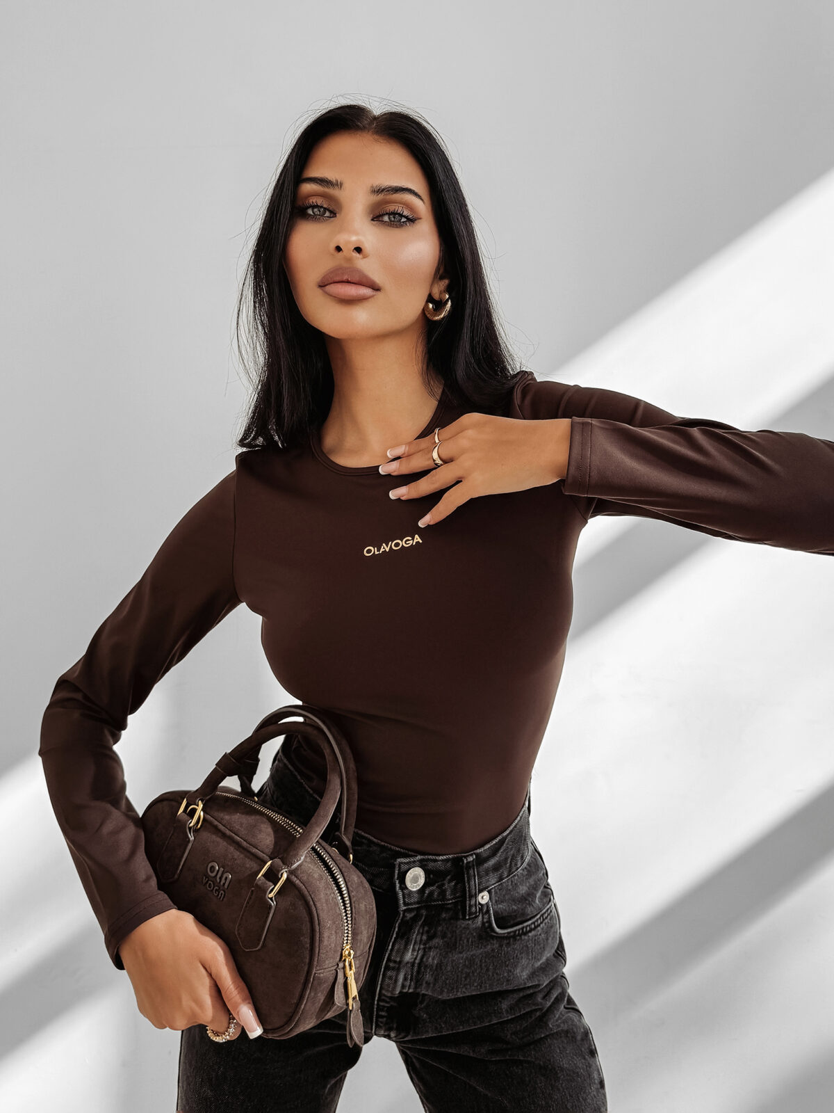 Subtelne metaliczne logo OLAVOGA umieszczone z przodu nadaje produktowi luksusowego charakteru, który jest zauważalny i jednocześnie nieprzesadzony. Dzięki temu bluzka idealnie wpisuje się w nowoczesne trendy modowe.