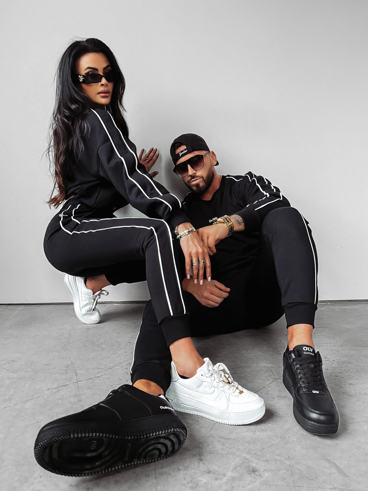 Subtelne logo OLAVOGA na bluzie i spodniach to symbol jakości oraz znak rozpoznawczy marki, która od lat definiuje nowoczesny styl premium. Uniwersalny czarny kolor sprawia, że zestaw pasuje do wszystkiego – od klasycznych sneakersów po modne kurtki z kolekcji OLAVOGA.