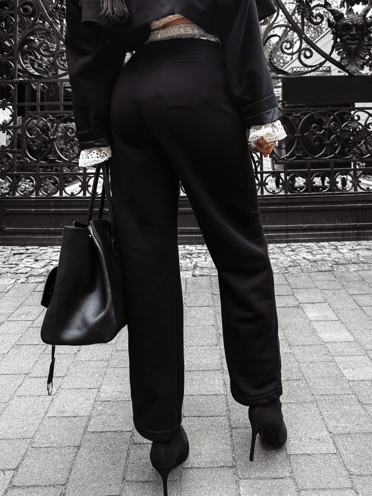 Czym się wyróżniają? Przede wszystkim oryginalnym wykończeniem. Na jednej z nogawek znajdziesz dodatkowy materiał w formie delikatnej koronki, który przełamuje sportowy charakter spodni i dodaje im subtelnej elegancji. To detal, który sprawia, że te spodnie idealnie odnajdą się również w bardziej stylowych zestawach. Na koronce naszyto subtelne logo marki OLAVOGA, które dopełnia całości i świadczy o najwyższej jakości wykończenia.