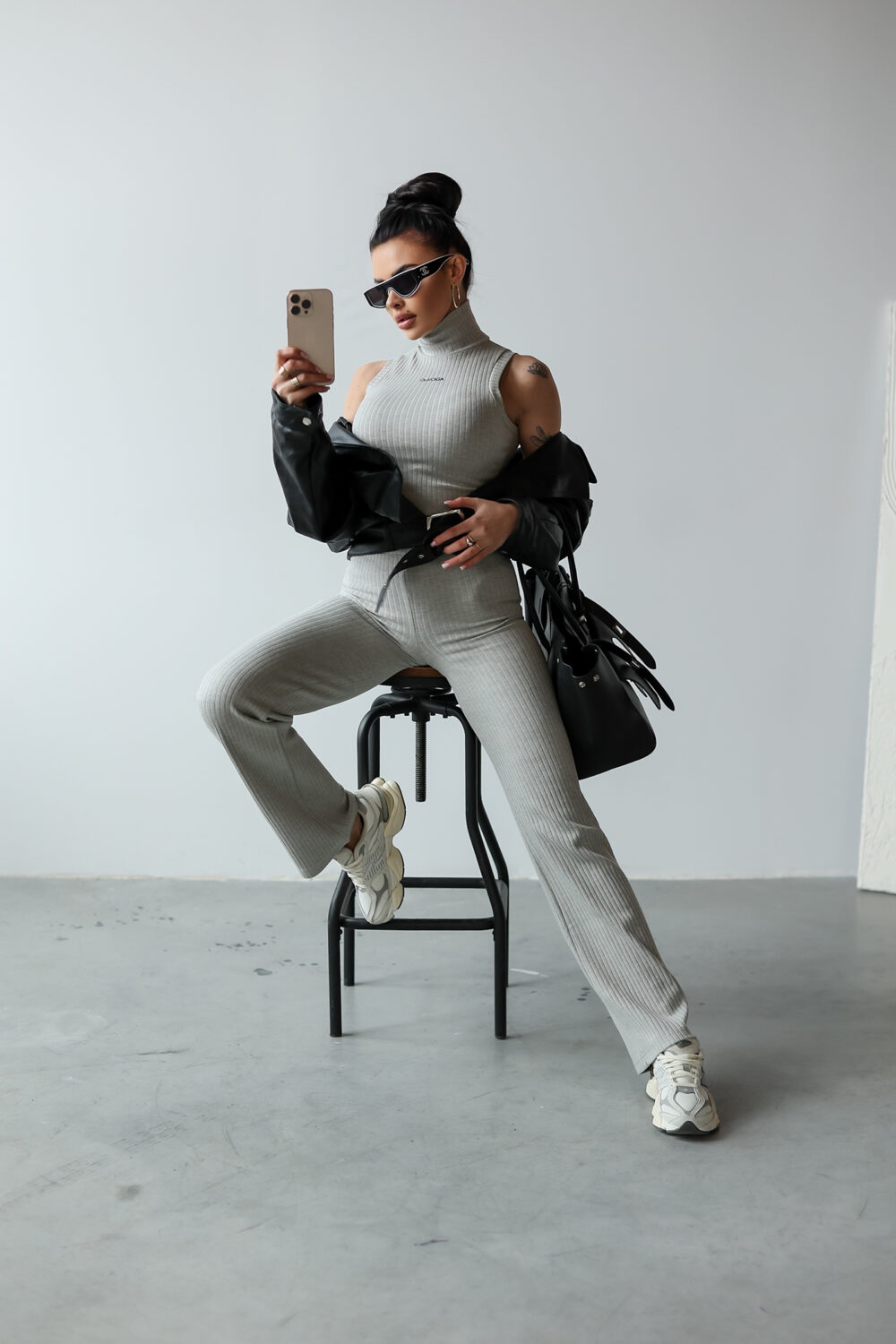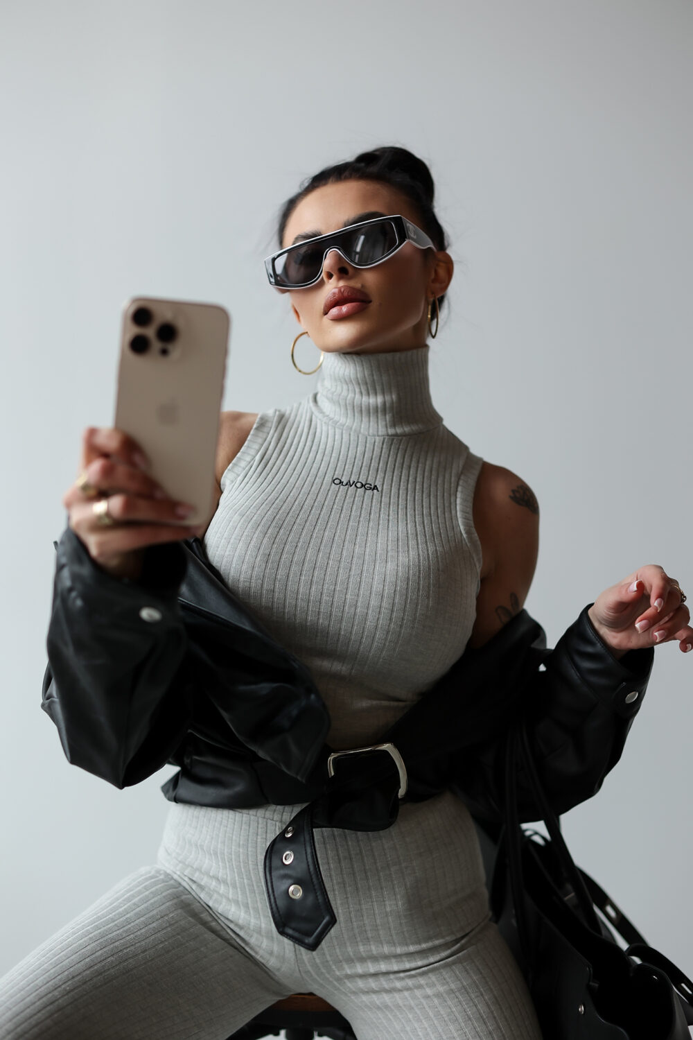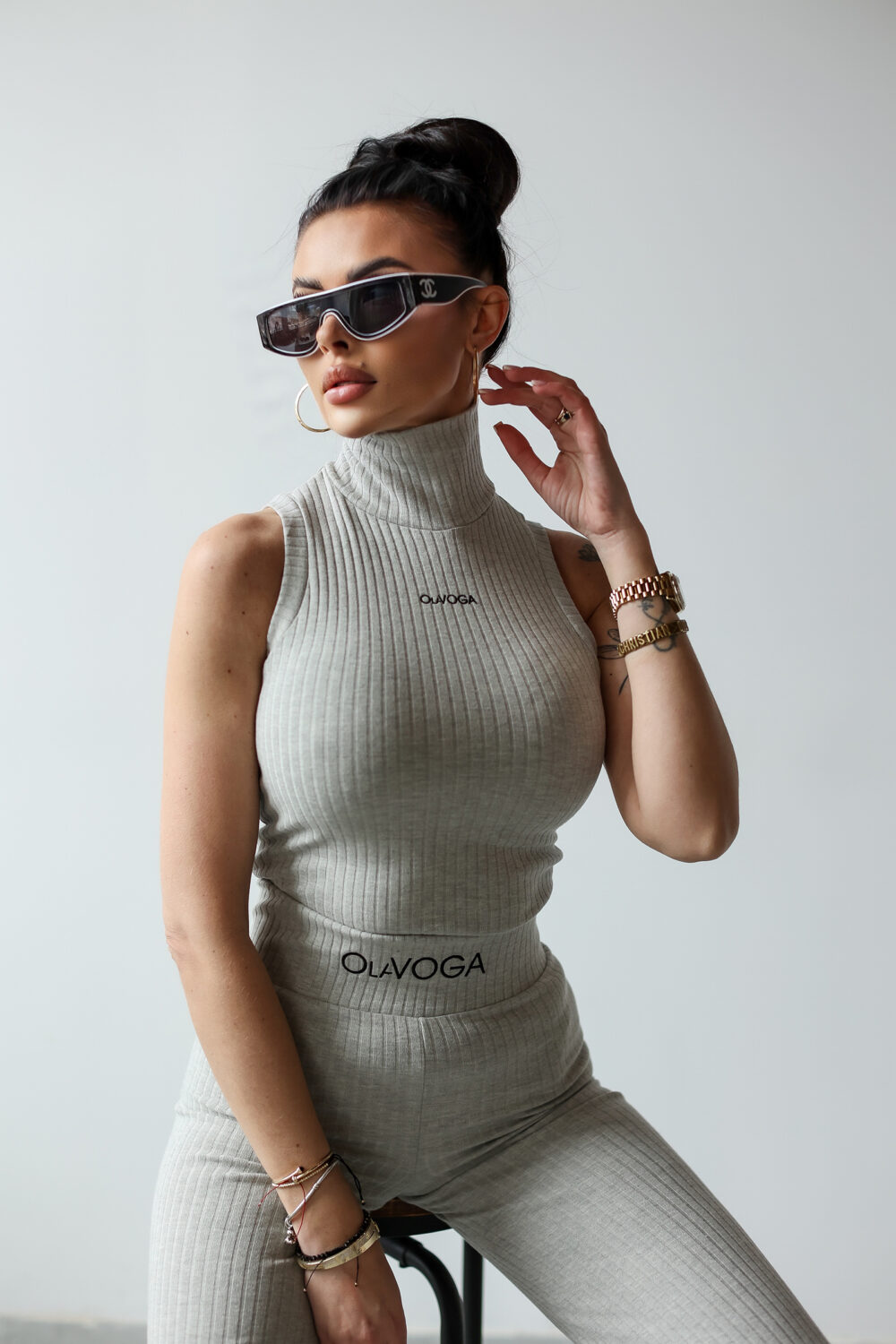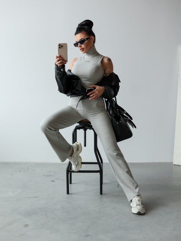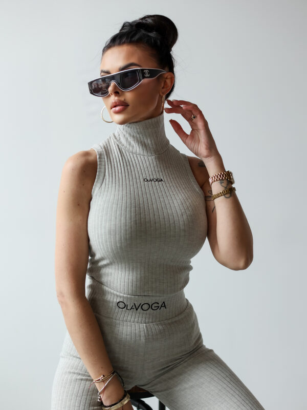 Komplet NERIX OLAVOGA to idealna propozycja dla kobiet, które lubią łączyć funkcjonalność z elegancją. Golf bez rękawów o krótszym kroju został wyposażony w suwak na tyle oraz minimalistyczny haft z logo OLAVOGA na przodzie. Spodnie o dopasowanym kroju z rozszerzanymi nogawkami posiadają logowaną gumę w pasie, która zapewnia idealne dopasowanie. Wykonany z prążkowanego materiału komplet doskonale sprawdzi się w nowoczesnych, casualowych stylizacjach.