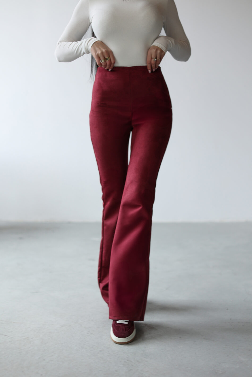Spodnie ZENO OLAVOGA to elegancja w casualowym wydaniu. Wykonane z miękkiego zamszu, wyróżniają się nogawkami rozszerzanymi ku dołowi, które optycznie wydłużają sylwetkę. Suwak w dopasowanym kolorze i minimalistyczny haft z logo OLAVOGA na przodzie nadają spodniom wyrafinowanego charakteru. To model idealny do stylizacji zarówno na co dzień, jak i na bardziej wyjątkowe okazje.