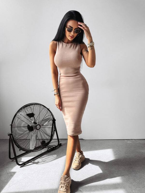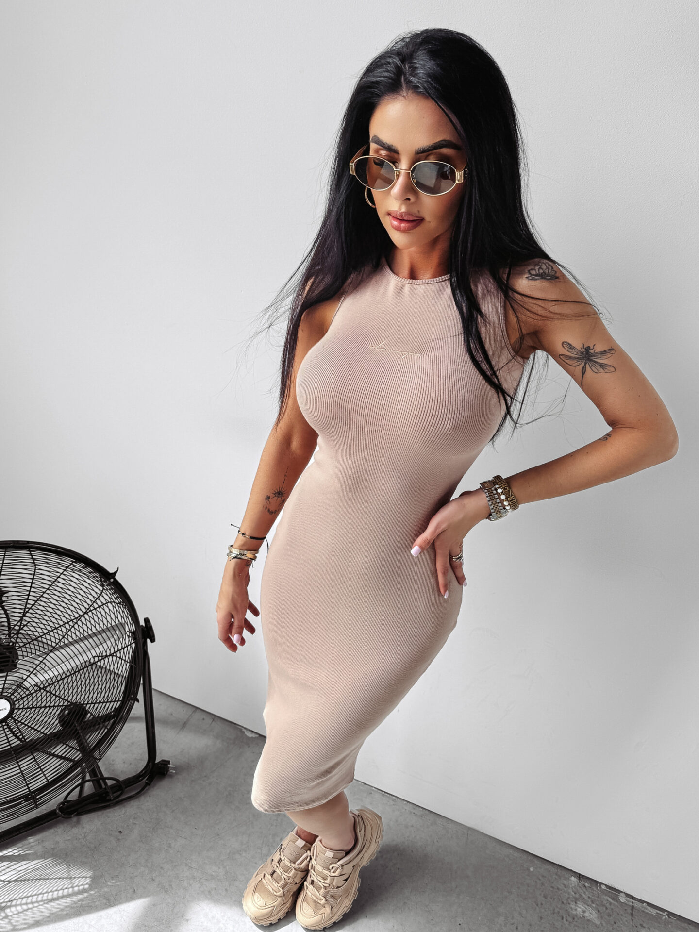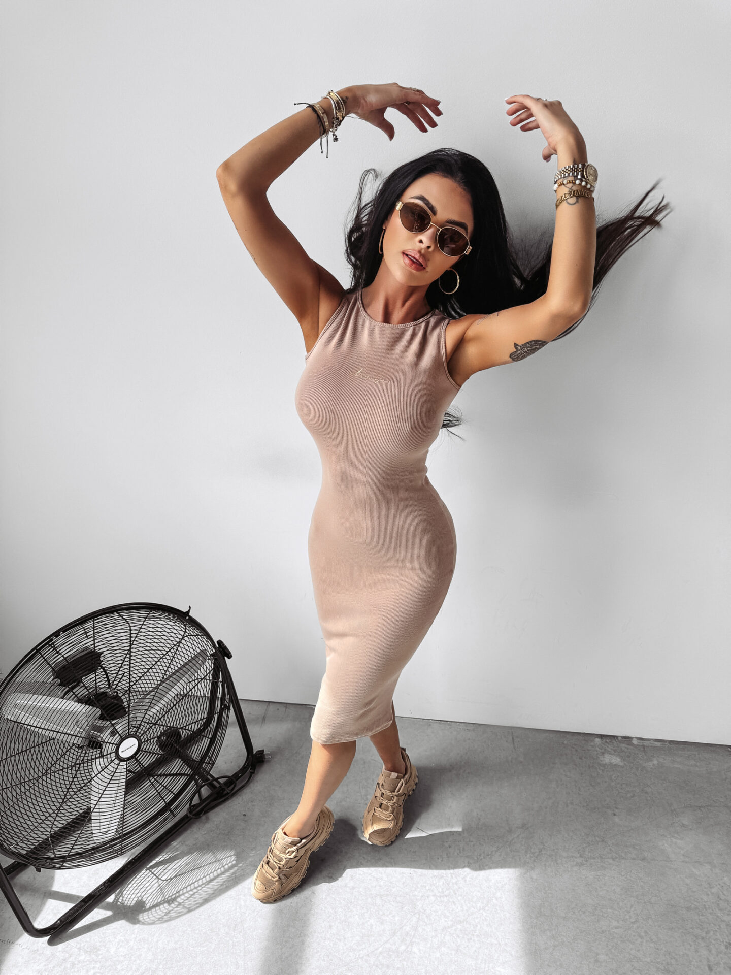 Elegancka sukienka MAY od Olavoga to idealny wybór na wiele okazji. Dzięki dopasowanemu krojowi podkreśla kobiece kształty, a prążkowana bawełna zapewnia wygodę i swobodę ruchów. Bez rękawów i sięgająca do kolan nadaje się zarówno na spotkanie biznesowe, jak i na wieczorne wyjście. Wystarczy dodać odpowiednie dodatki, by stworzyć stylizację dopasowaną do okazji. Na przodzie elegancko wyróżnia się logo marki OLAVOGA, dodając sukience wyjątkowego charakteru.