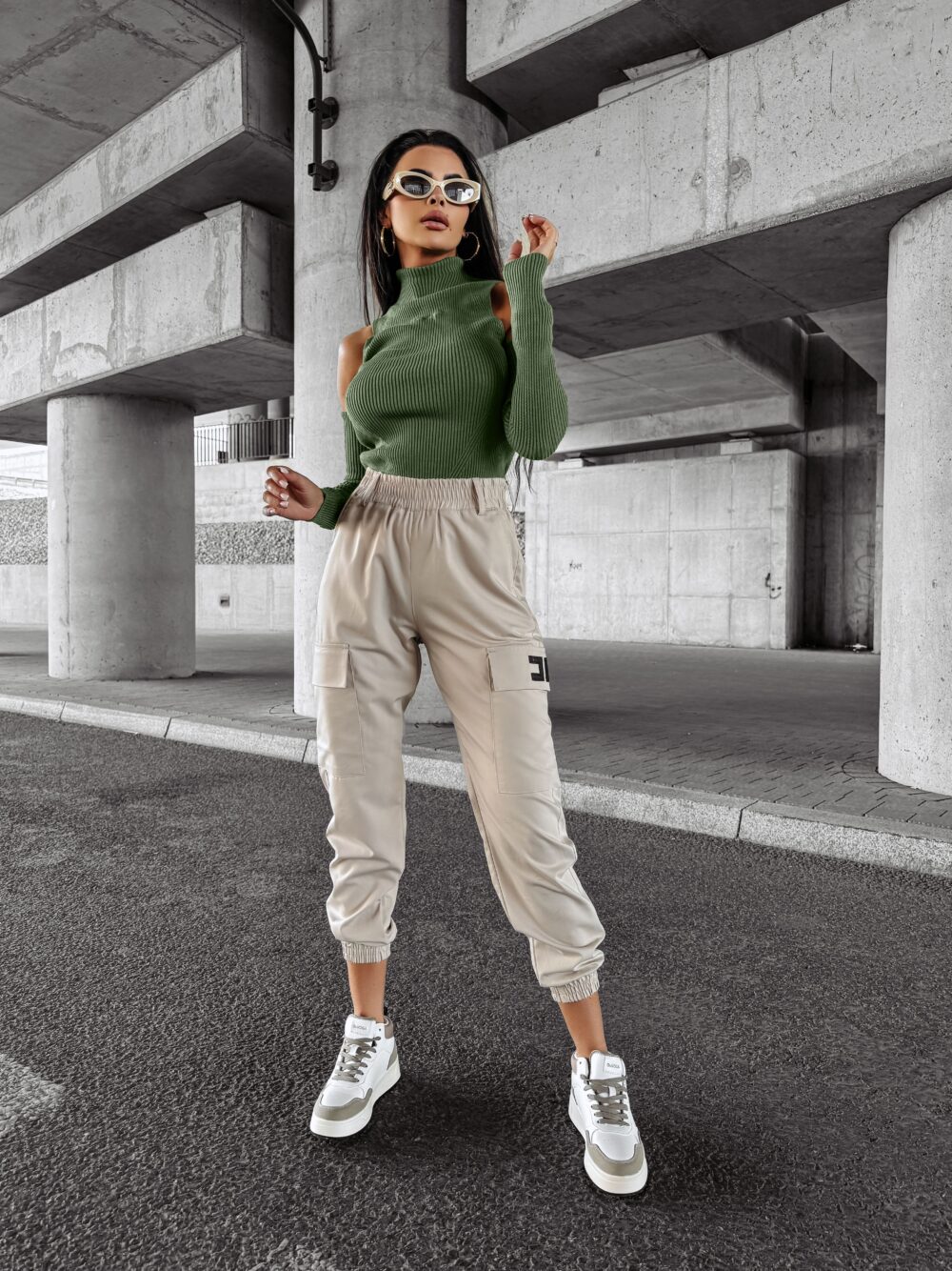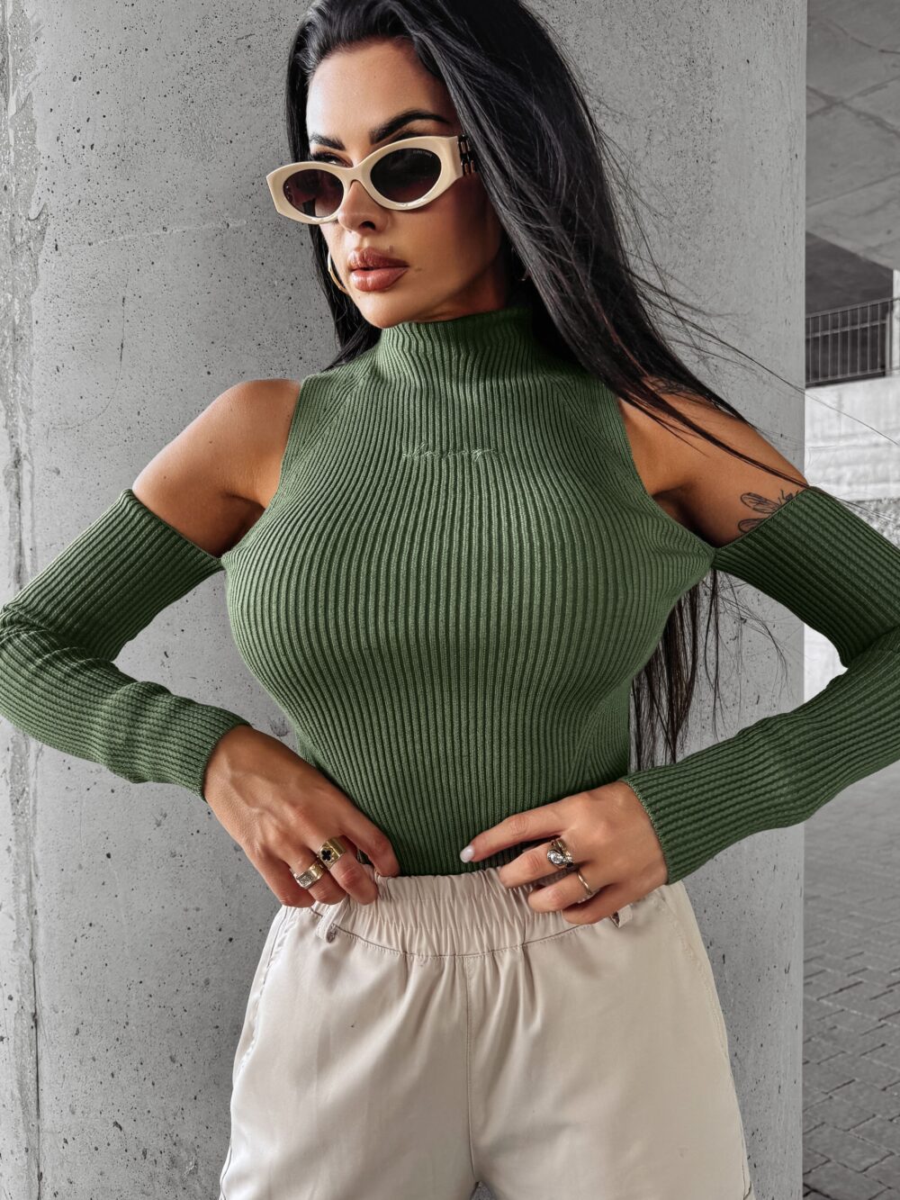 Top damski prążkowany FLIGHT OLAVOGA khaki