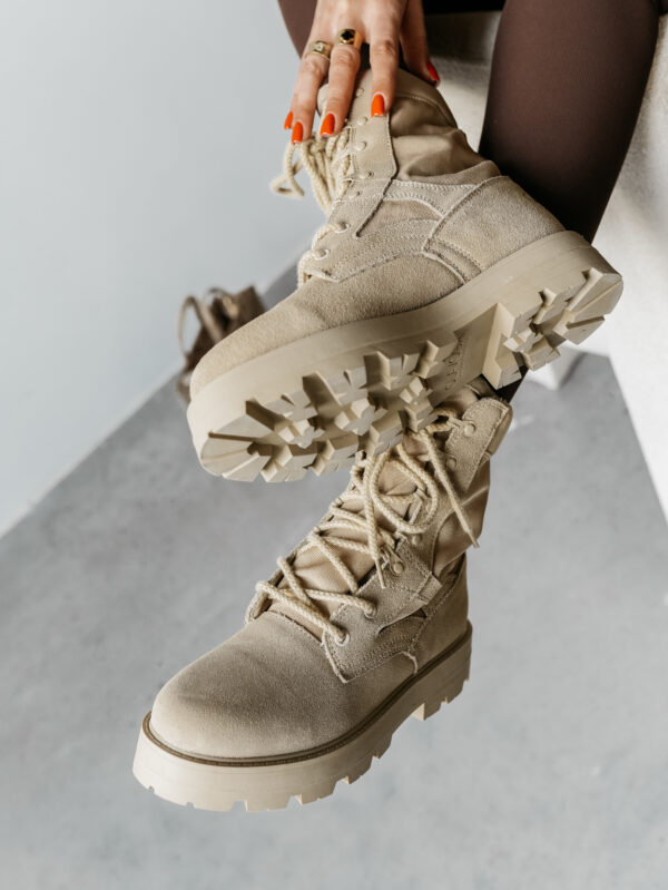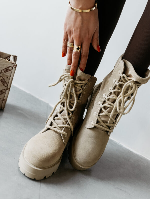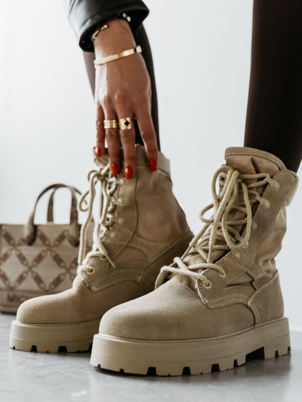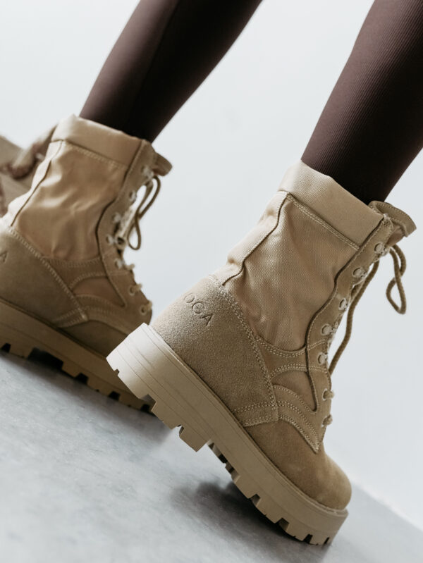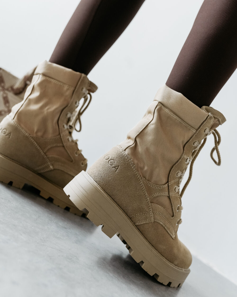 Workery Hiker OLAVOGA to wyjątkowe buty stworzone z myślą o kobietach, które cenią wygodę i styl w codziennych stylizacjach. Wysoki fason i masywna podeszwa gwarantują doskonałą amortyzację i stabilność, zapewniając komfort podczas każdego kroku. Nieocieplane, wykonane z dwóch rodzajów materiałów – zamszu w dolnej części i gładkiego tworzywa w górnej – wyróżniają się niebanalnym połączeniem faktur. Detale, takie jak zabudowana pięta z tłoczonym logo OLAVOGA, haft OLV na boku oraz logo marki na języku, podkreślają ich nowoczesny design. Wiązane z przodu buty doskonale dopasowują się do stopy, czyniąc je nie tylko funkcjonalnym, ale i stylowym wyborem na chłodniejsze dni.