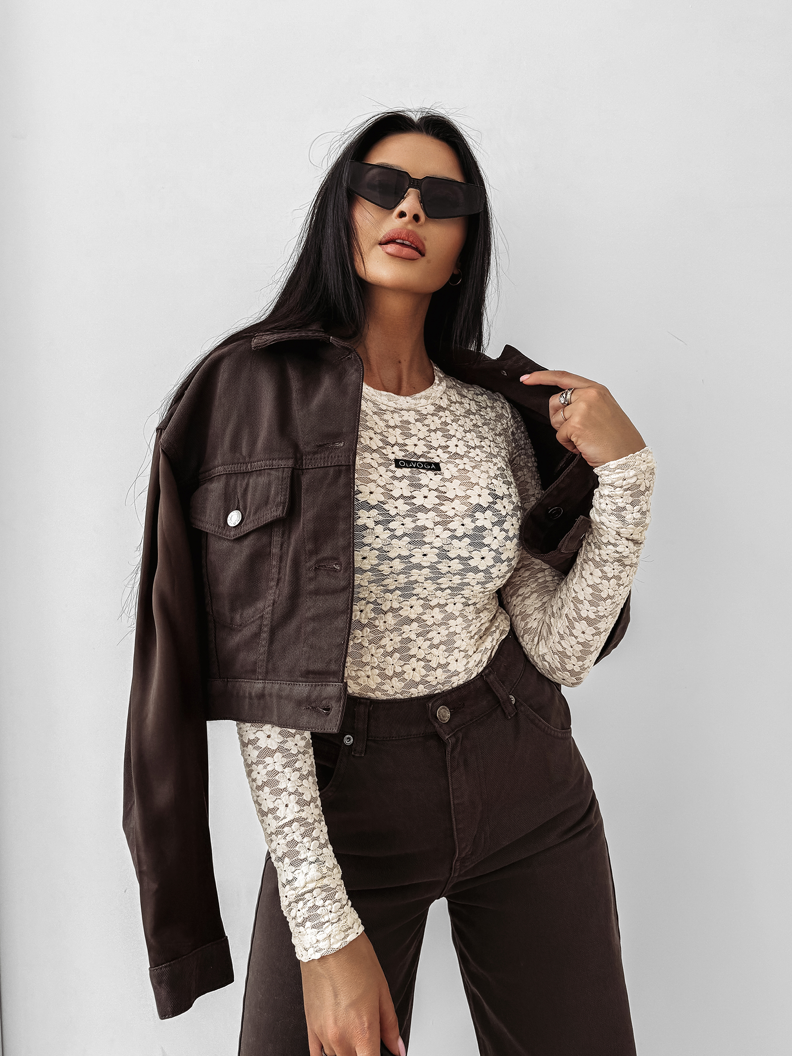 Body wykonane zostało z elastycznej koronki w kwiatowy wzór, co nie tylko zapewnia wyjątkowy efekt wizualny, ale też sprawia, że całość perfekcyjnie układa się na ciele. Delikatna faktura materiału w połączeniu z przylegającym krojem tworzy sylwetkę, która wygląda stylowo i nowocześnie – niezależnie od sytuacji.