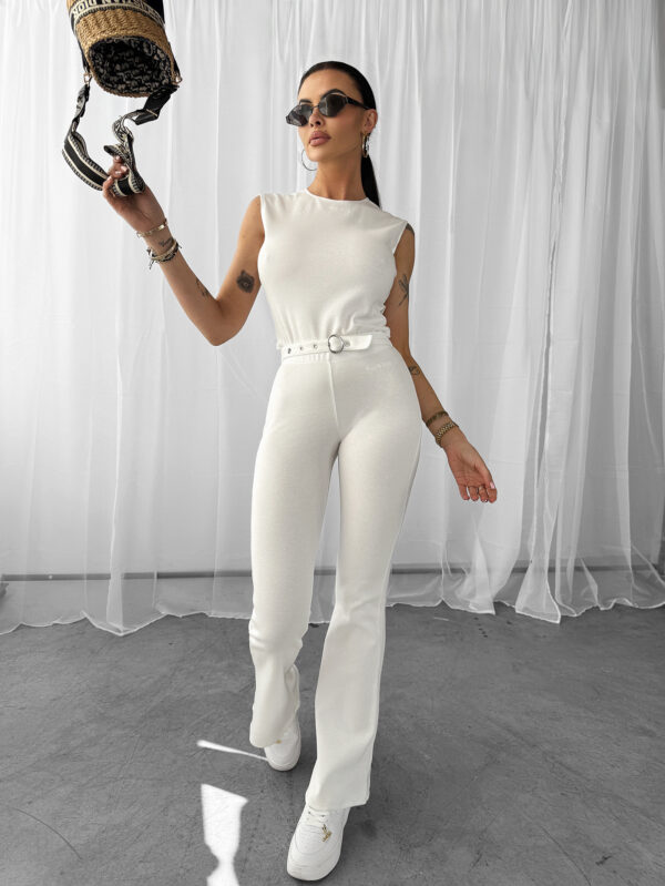 Komplet SERENDIPITY OLAVOGA to idealne połączenie komfortu i stylu. Wykonany z wysokiej jakości elastycznej bawełny, zapewnia wygodę i doskonałe dopasowanie do sylwetki. Góra to przylegający top bez rękawów, który wyróżnia się efektownym rozcięciem na plecach oraz regulowaną talią, podkreślającą figurę. Na przodzie umieszczony został subtelny haft z logo marki OLAVOGA, dopasowany kolorystycznie do wariantu produktu. Dół to stylowe spodnie z rozszerzanymi nogawkami, które optycznie wydłużają sylwetkę. Regulowana talia gwarantuje idealne dopasowanie, a minimalistyczny haft z logo brandu nadaje całości wyjątkowego charakteru.