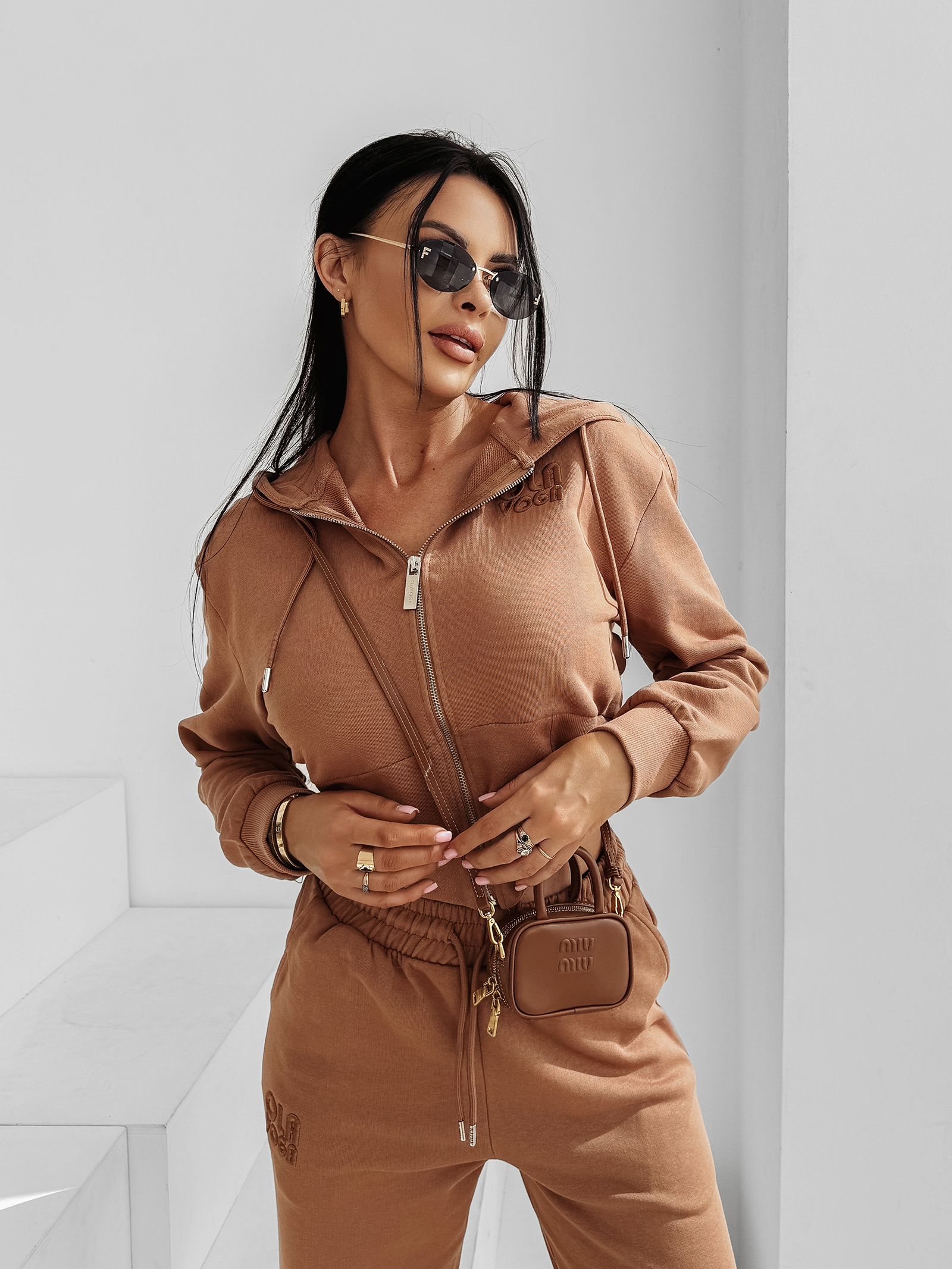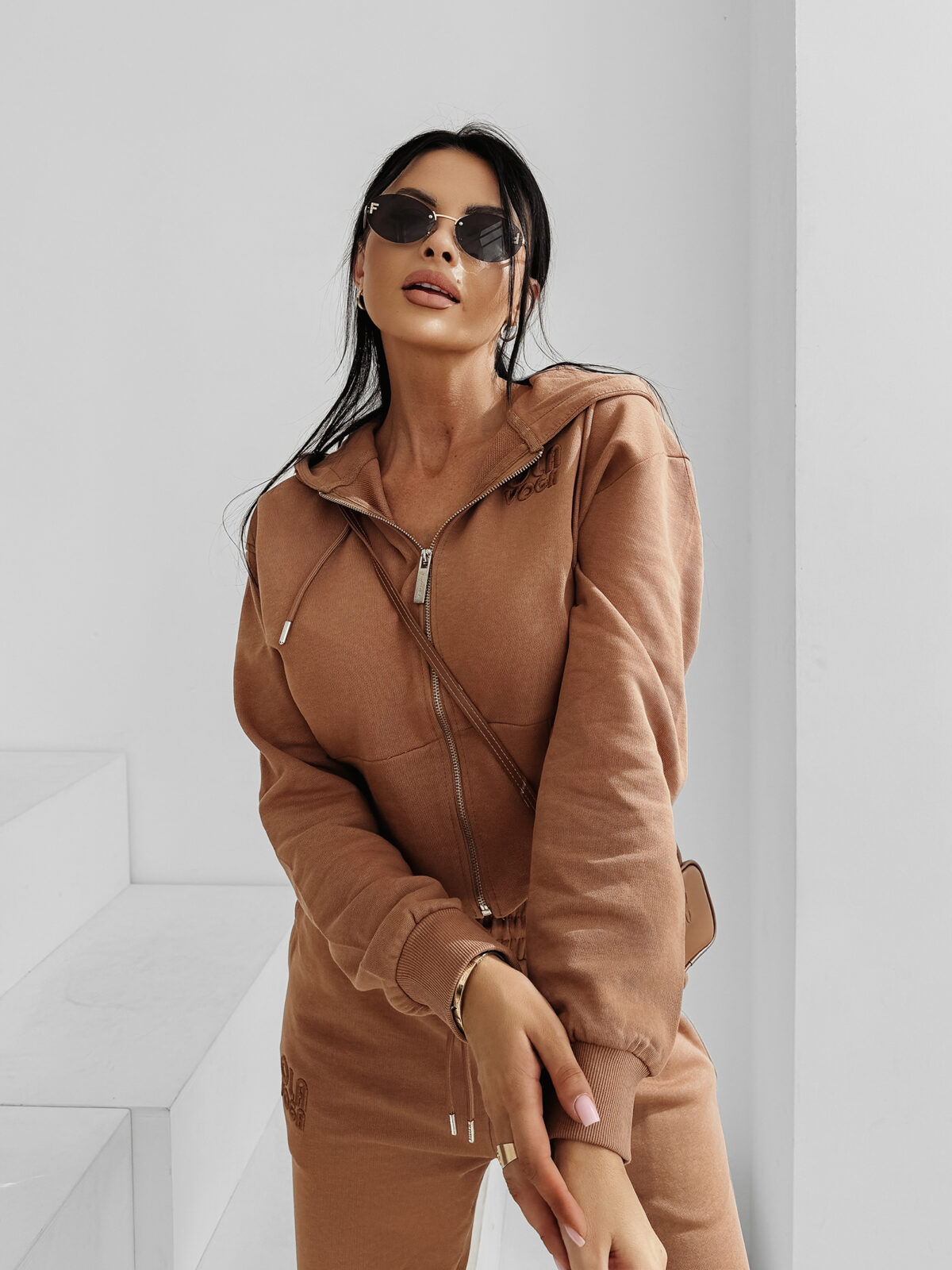 Zarówno bluza, jak i spodnie zdobi haft 3D z logo OLAVOGA, który stanowi wyraz dbałości o szczegóły i prestiżu marki. Ten modny detal nadaje kompletowi nowoczesny i ekskluzywny wygląd, co czyni go idealnym wyborem dla kobiet świadomych trendów i jakości.