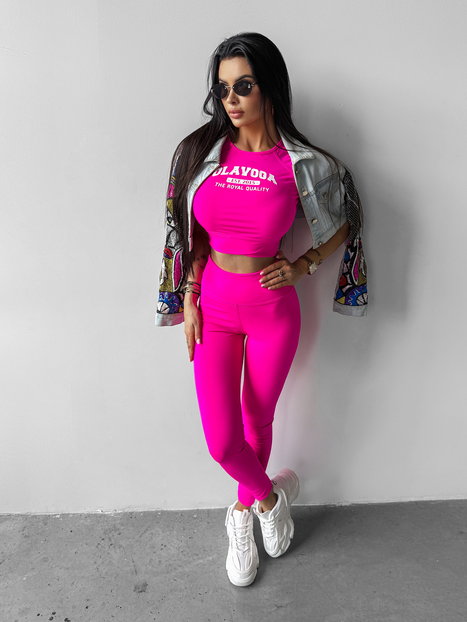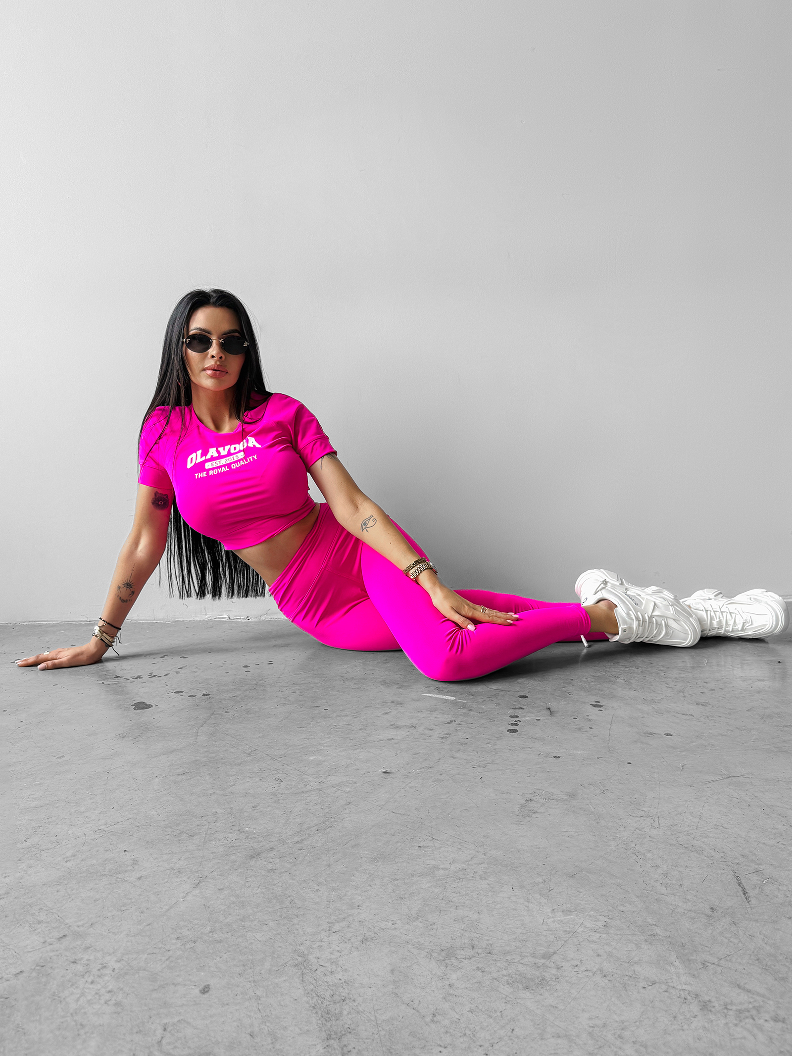 Komplet ADD OLAVOGA to modny zestaw, który łączy sportowy komfort z eleganckim stylem. Wykonany z elastycznego materiału, zapewnia doskonałe dopasowanie, a bluzka z krótkim rękawem z przeszyciami i haftowanym logo OLAVOGA z napisem THE ROYAL QUALITY wyróżnia się subtelnym, ale wyrazistym akcentem. Legginsy, które idealnie przylegają do ciała, dopełniają całość, tworząc spójną i stylową sylwetkę. Na plecach znajduje się logo brandu, co dodaje charakteru temu wyjątkowemu kompletowi, idealnemu do aktywności sportowych lub codziennych stylizacji.