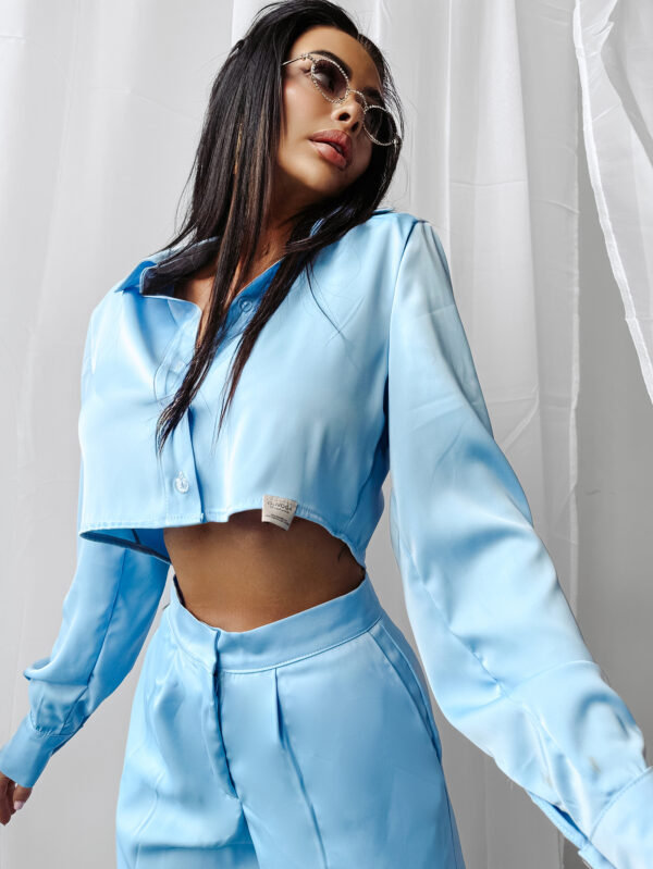 Komplet damski ETIKE OLAVOGA to połączenie klasyki z nowoczesnym akcentem. Koszula z długim rękawem, zapinana na guziki, wyróżnia się poduszkami na ramionach, które subtelnie modelują sylwetkę, a minimalistyczna, logowana naszywka na przodzie dodaje elegancji. Dół kompletu to proste, eleganckie spodnie z kieszeniami po bokach, które łączą wygodę z ponadczasowym stylem. Z tyłu znajduje się logowana naszywka, podkreślająca luksusowy charakter zestawu. To idealny wybór dla kobiet ceniących elegancję i komfort w jednej stylizacji.