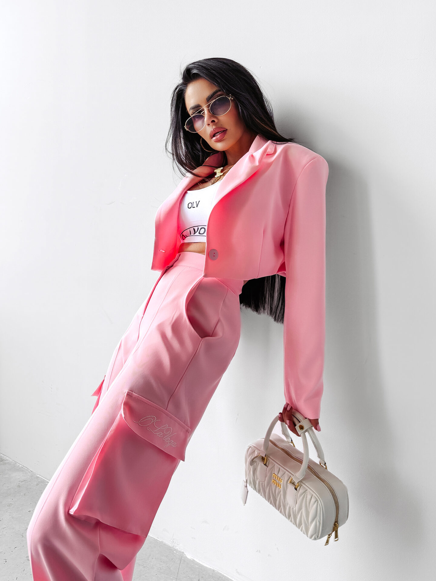 Postaw na elegancję w miejskim wydaniu z kompletem garnitur MOHITO OLAVOGA. Wykonany z oddychającego materiału, który zapewnia komfort i styl przez cały dzień. Oversiz’owa marynarka z delikatnym haftem na kołnierzuto połączenie klasyki z nowoczesnym akcentem, a spodnie jogger z rozszerzanymi nogawkami i kieszeniami po bokach nadają całości miejskiego charakteru. Minimalistyczne logo na kieszeni podkreśla prostotę i funkcjonalność. Idealny wybór na stylowy, codzienny look z nutą elegancji.