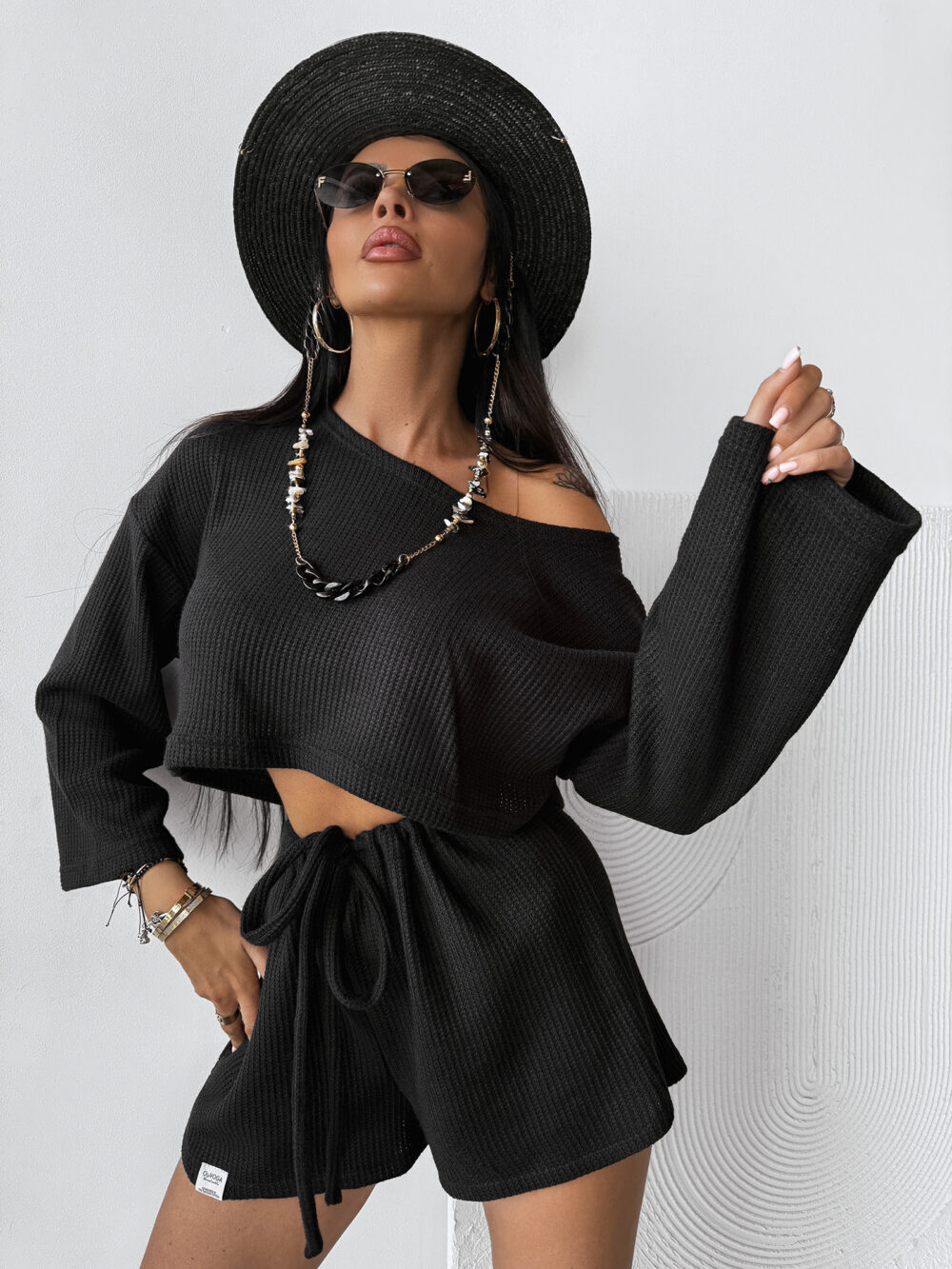 Komplet CUBA LIBRE OLAVOGA to idealna propozycja na letnie dni, łącząca casualowy styl z wygodą. Wykonany z wysokiej jakości, oddychającego materiału, zapewnia komfort przez cały dzień. Góra to bluzka z długim rękawem, rozszerzającymi się ku dołowi, z obszernym dekoltem, która nadaje całości lekkości. Minimalistyczna naszywka z logo OLAVOGA na przodzie podkreśla markowy styl. Dół stanowią klasyczne szorty z regulacją w pasie za pomocą sznurka, z dodatkową naszywką na przodzie. Idealny komplet na letnie spacery czy spotkania w gronie przyjaciół.