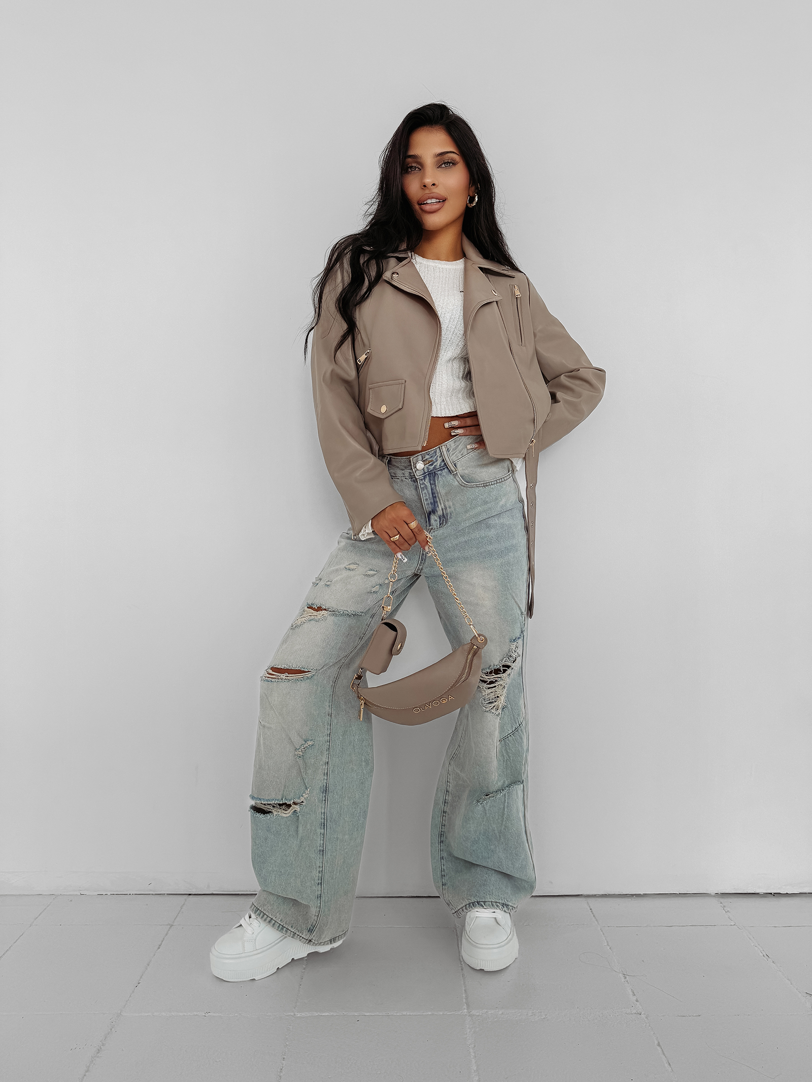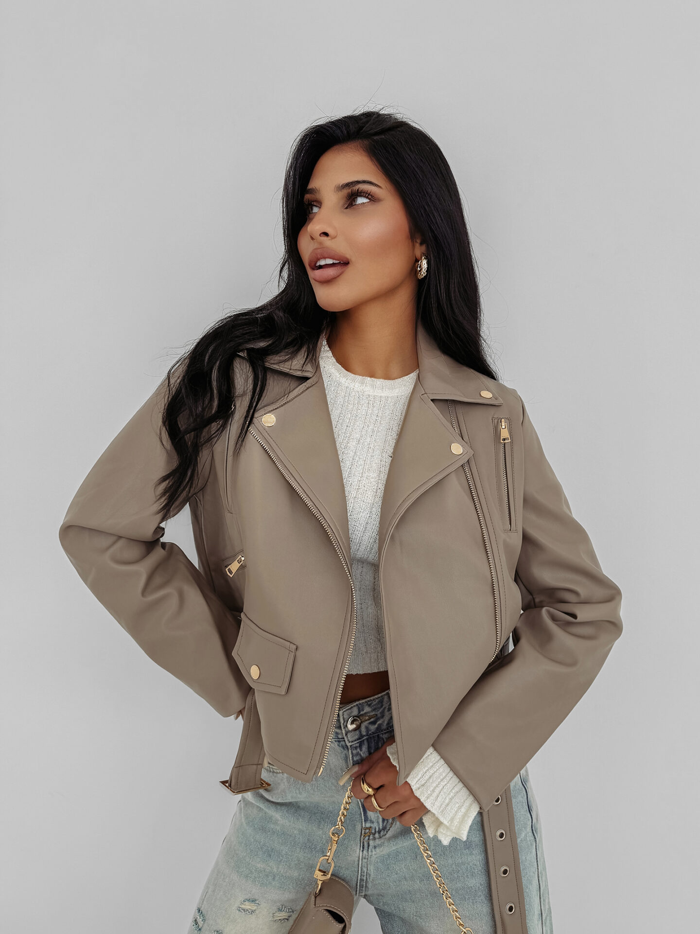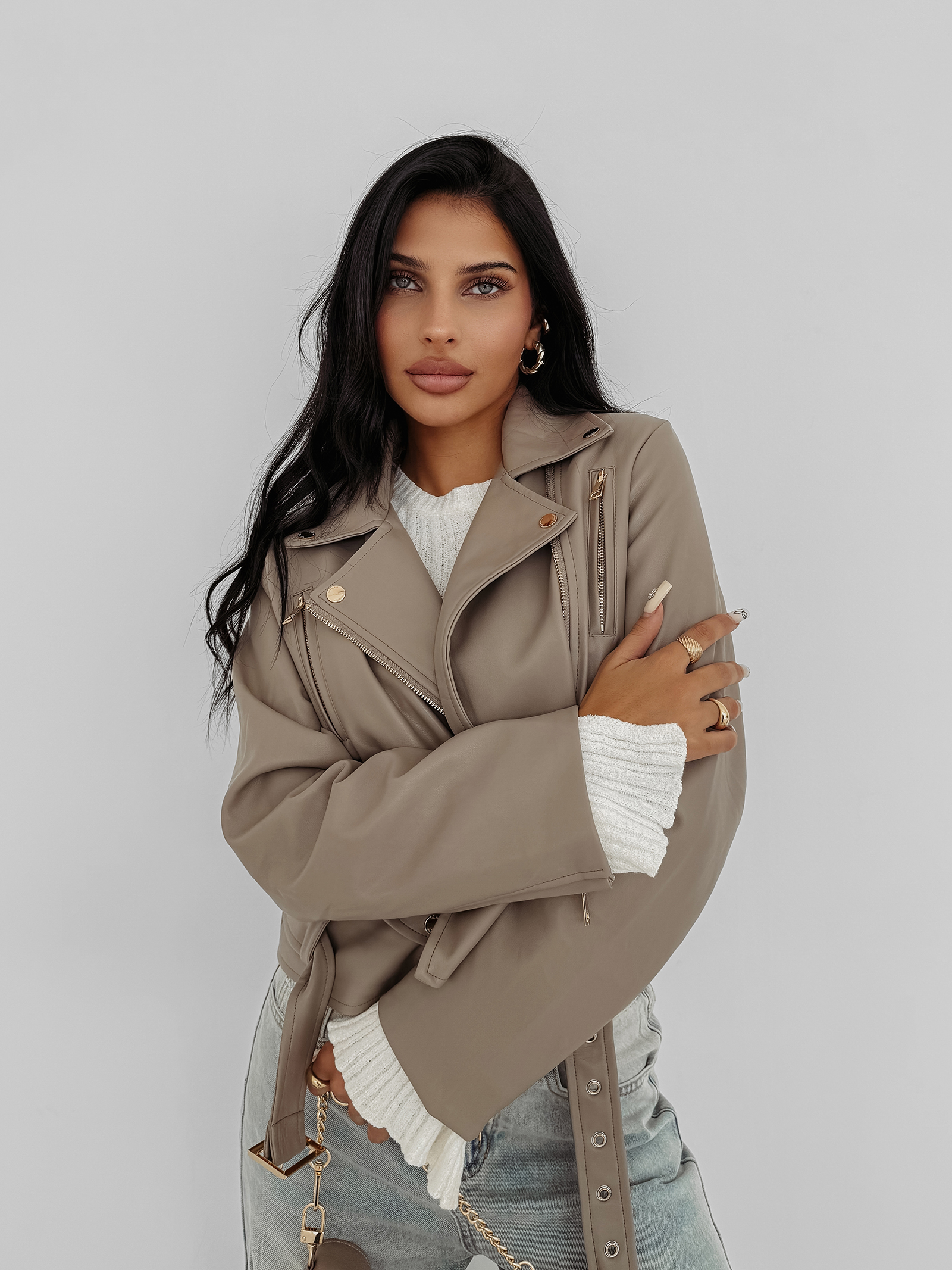Kurtka posiada pasek z klamrą w talii, który pozwala dopasować fason do sylwetki. Kieszenie zapinane na zamek zwiększają funkcjonalność, a złote logo Olavoga na plecach subtelnie podkreśla charakter premium. To kurtka, która sama w sobie tworzy stylizację, a każdy detal został zaprojektowany, aby połączyć elegancję z miejskim, rockowym stylem.