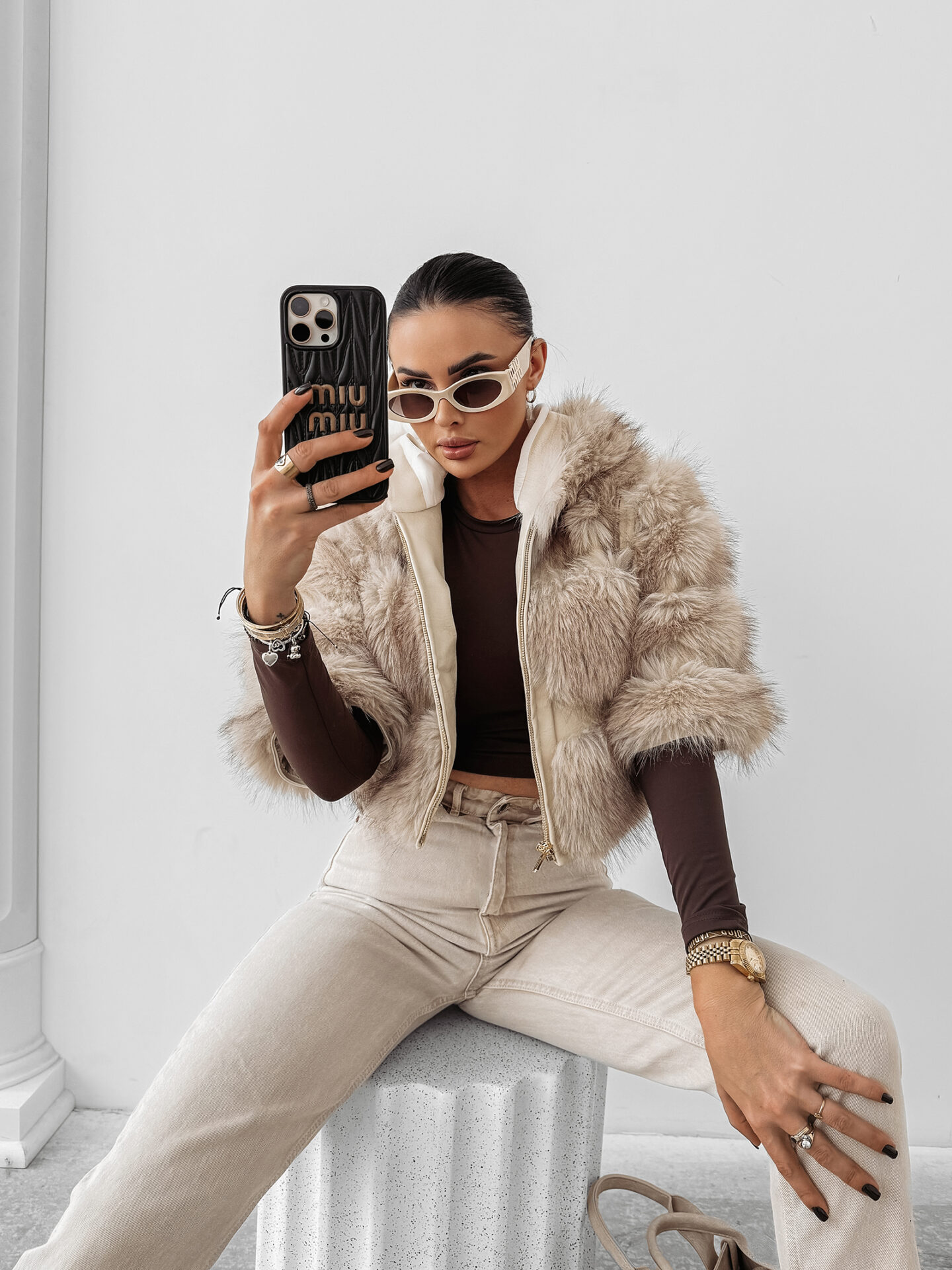 Materiał, z którego uszyto kurtkę OLAVOGA LANIKA, jest przyjemny w dotyku i zapewnia komfort noszenia nawet w chłodne dni. Miękkie futerko to nie tylko estetyczny akcent, ale także dodatkowa ochrona termiczna, dzięki czemu kurtka sprawdza się w różnych warunkach. Dodatkowo złote detale oraz minimalistyczne wykończenia podnoszą prestiż i nadają kurtce modny, a jednocześnie klasyczny wygląd. Taki design sprawia, że kurtka idealnie pasuje zarówno do casualowych, jak i bardziej eleganckich stylizacji.