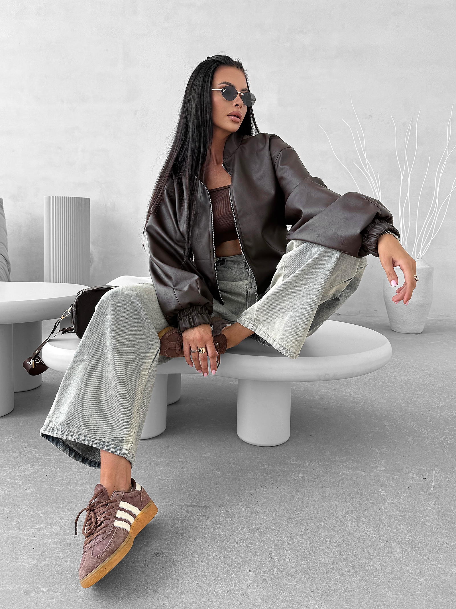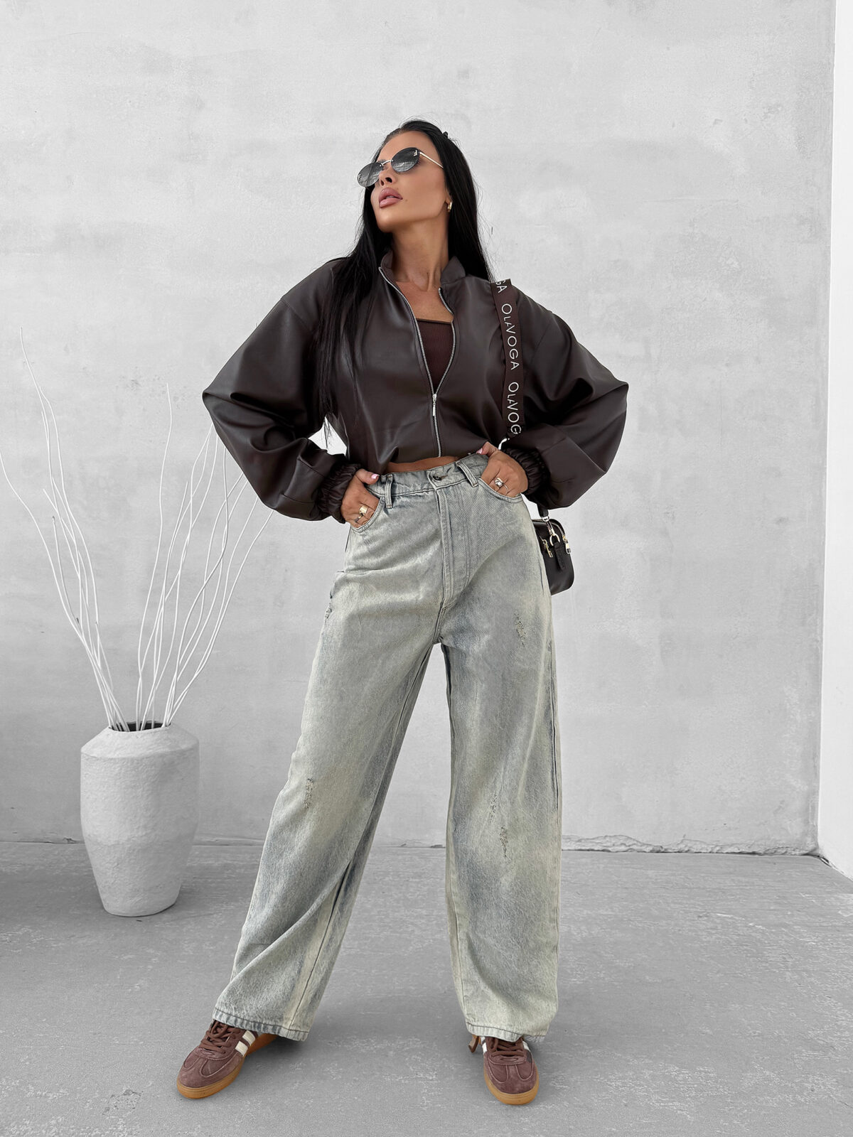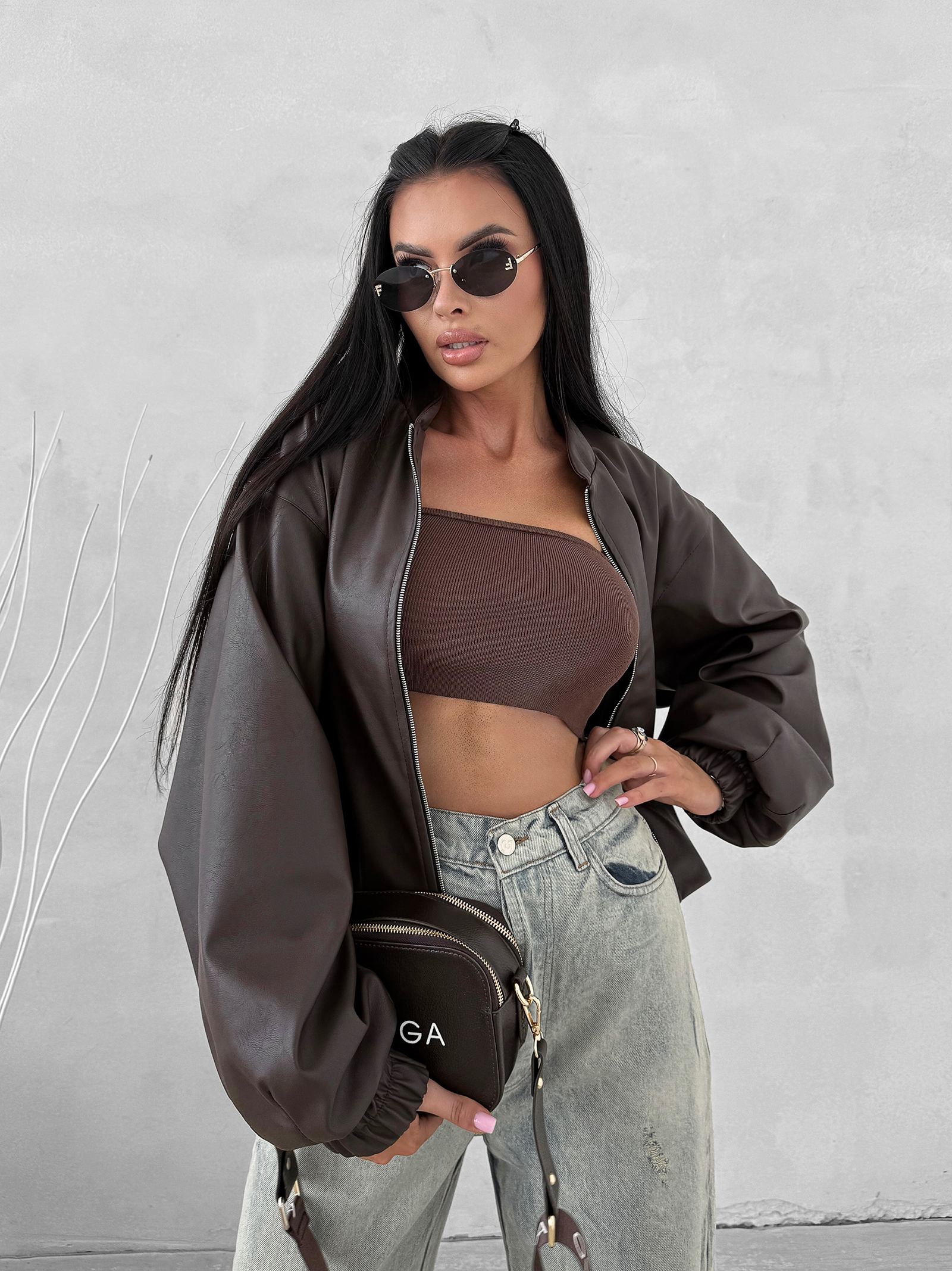 OLAVOGA Soft Shadow – krótka kurtka damska z ekoskóry w nowoczesnym stylu oversize