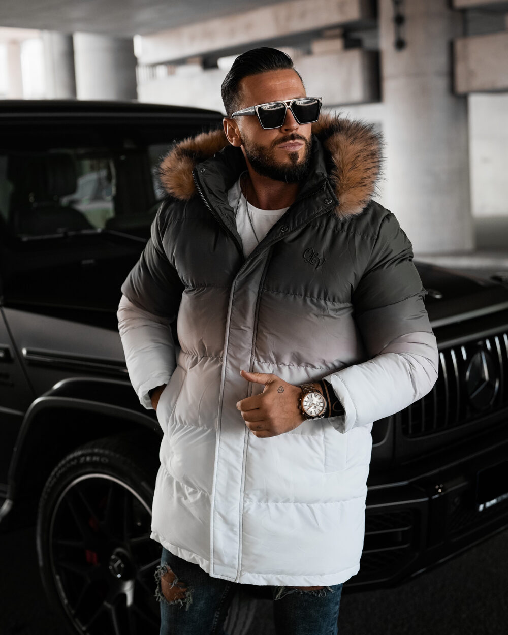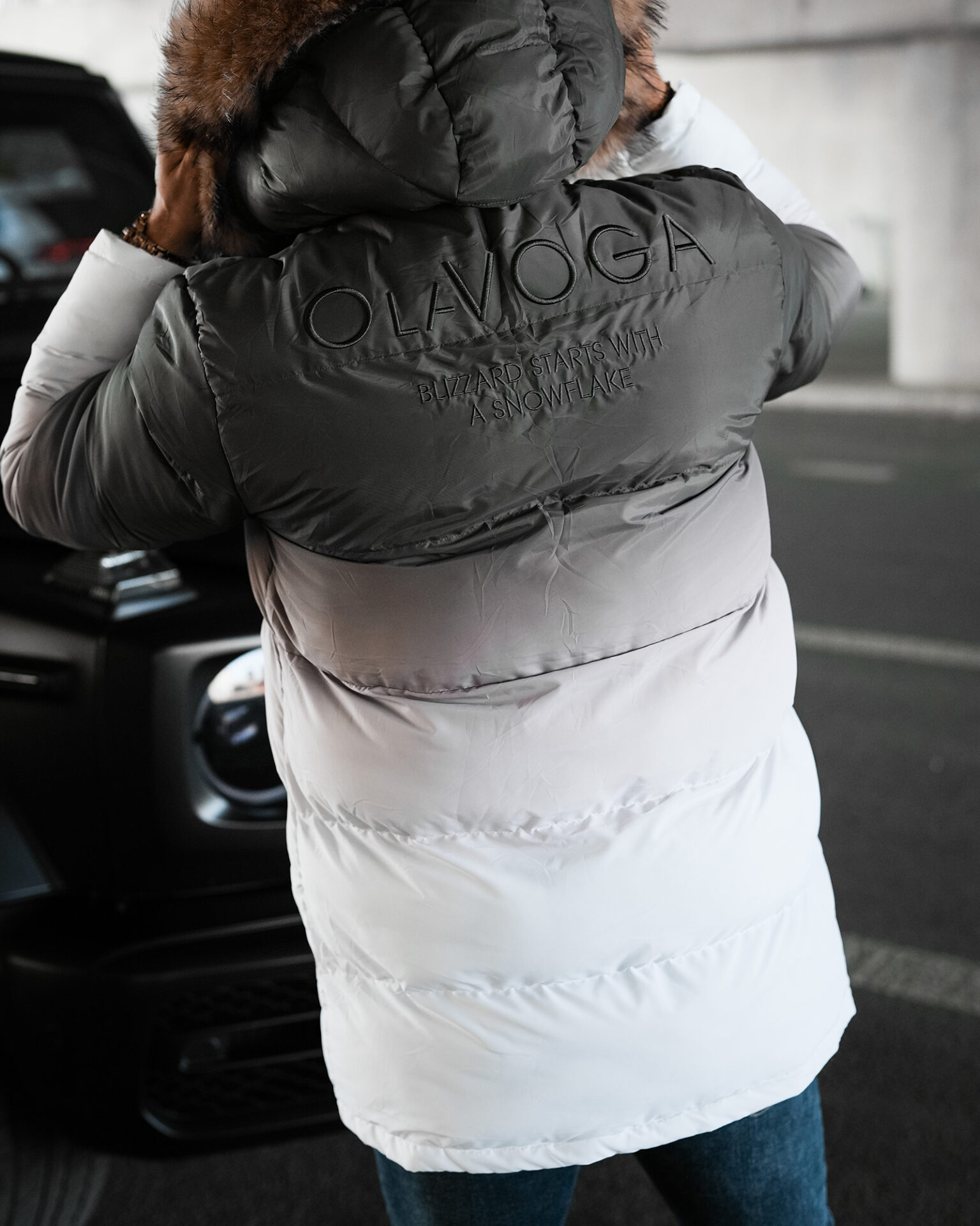 OMBRE OLAVOGA to kurtka o przedłużonym kroju z futrzanym kapturem i efektem ombre. Wygodne kieszenie i logowane ściągacze dodają jej stylu, a haftowane logo na plecach przyciąga uwagę. Świetna na zimę, dla mężczyzn ceniących styl i wygodę.