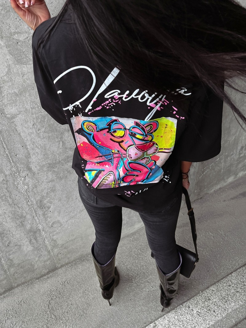 T-shirt oversize z nadrukiem ROSU OLAVOGA czarny