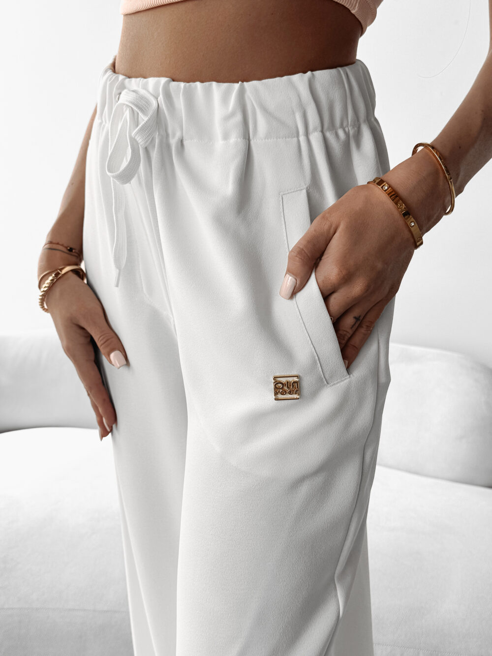 W modelu MIAL nie brakuje również detali, które podkreślają jego wysoką jakość i stylowy charakter. Po bokach znajdują się praktyczne kieszenie, które dodają spodniom funkcjonalności, a przy tym nie zaburzają ich eleganckiego kroju.