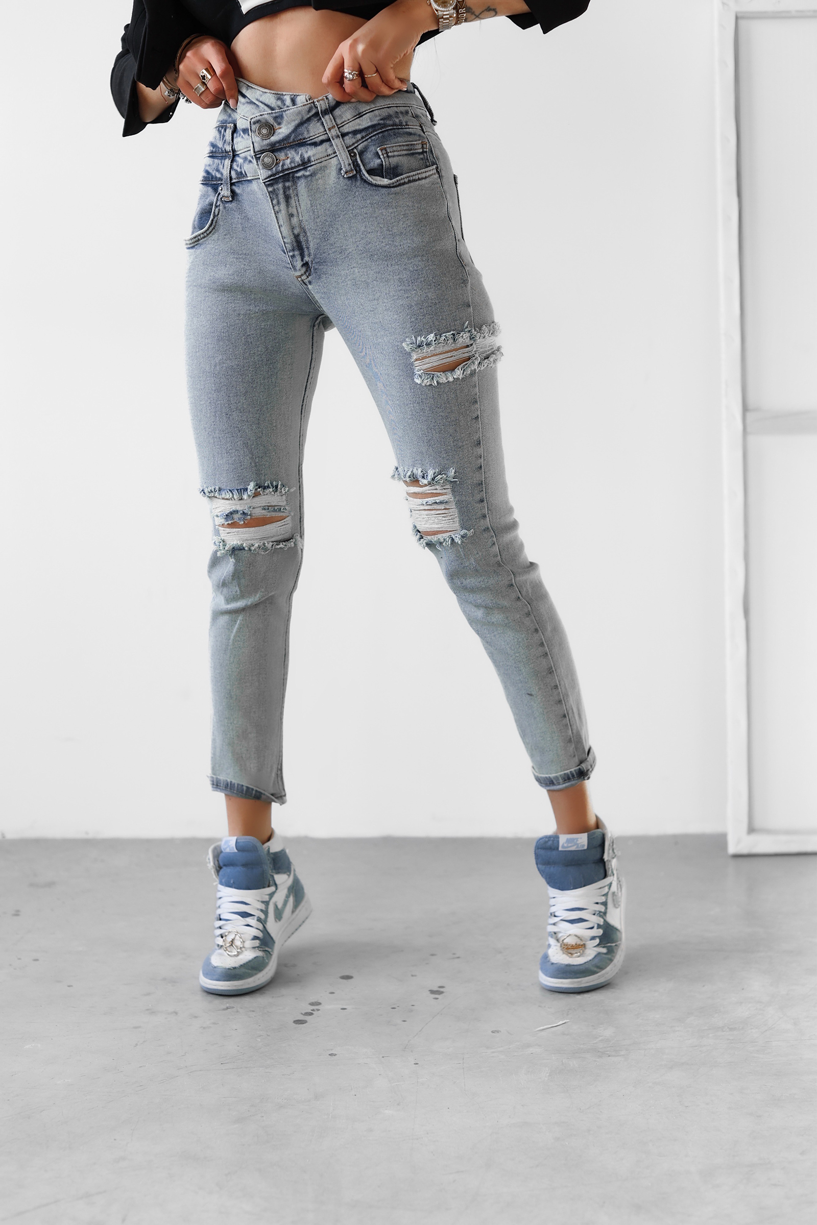 Spodnie jeansowe z przetarciami LUNA OLAVOGA niebieskie