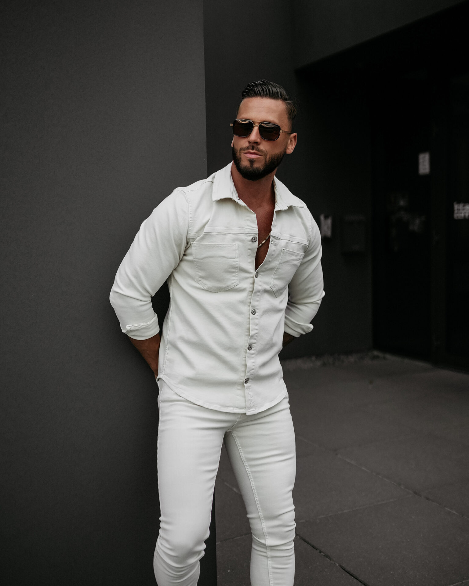- Fason slim fit: nowoczesny krój podkreślający męską sylwetkę.