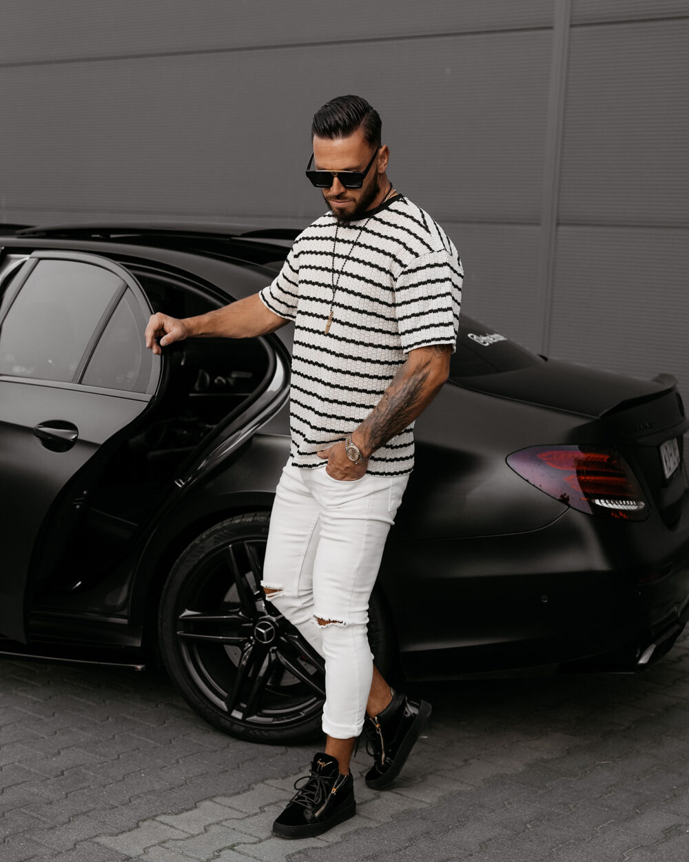 Jeśli szukasz uniwersalnego elementu garderoby, który sprawdzi się zarówno na co dzień, jak i w nieco bardziej dopracowanych stylizacjach, T-shirt męski dzianinowy w paski STRIP OLAVOGA będzie doskonałym wyborem. To model, który łączy klasykę z nowoczesnym podejściem do mody męskiej, oferując jednocześnie komfort, trwałość i ponadczasowy styl.