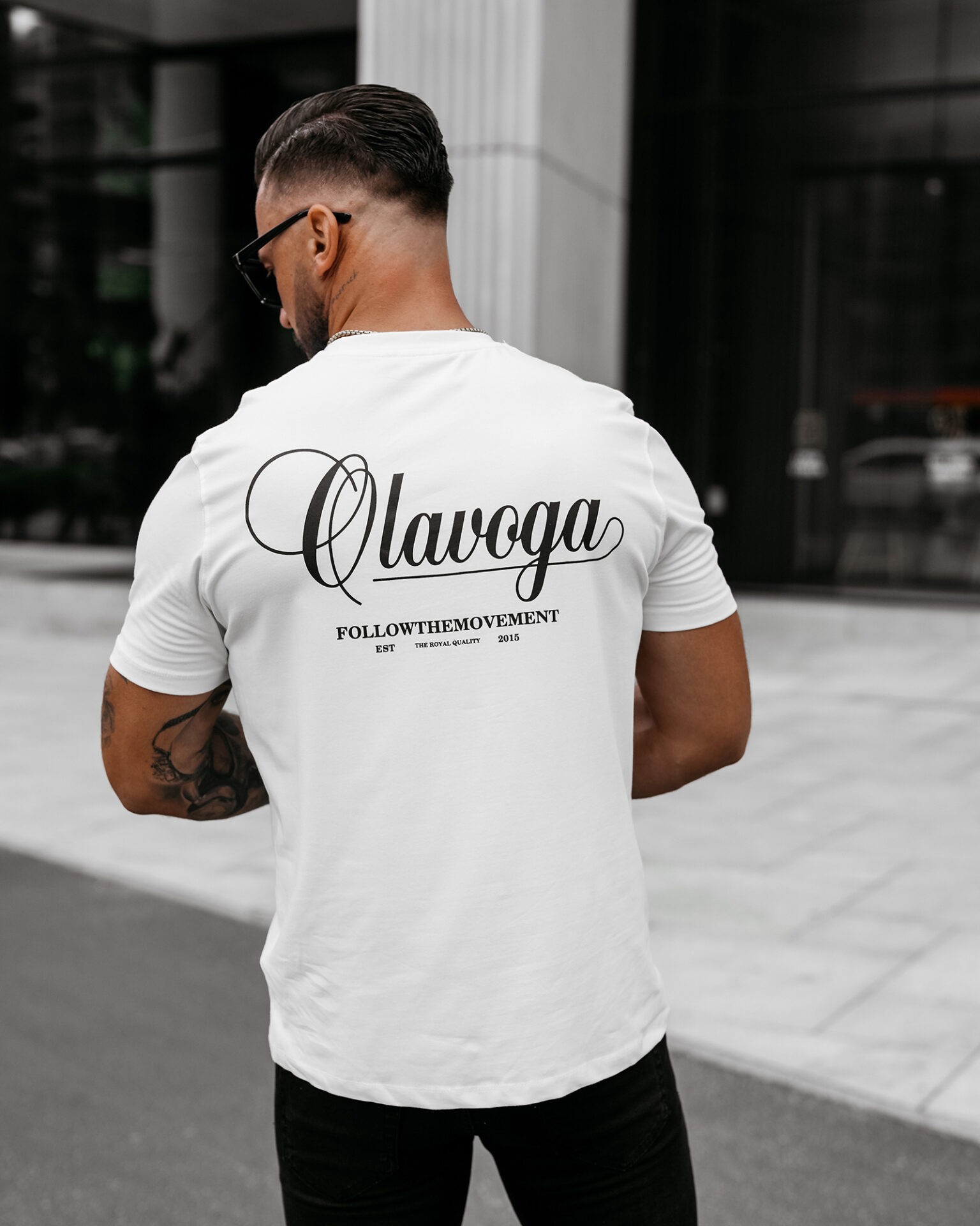 T-shirt został uszyty z elastycznej bawełny najwyższej jakości, co zapewnia trwałość i doskonałe dopasowanie do sylwetki. Na przodzie znajduje się minimalistyczne, ale efektowne logo OLAVOGA w unikalnym princie, które nadaje koszulce charakteru, a duże logo na plecach sprawia, że produkt wyróżnia się na tle innych.