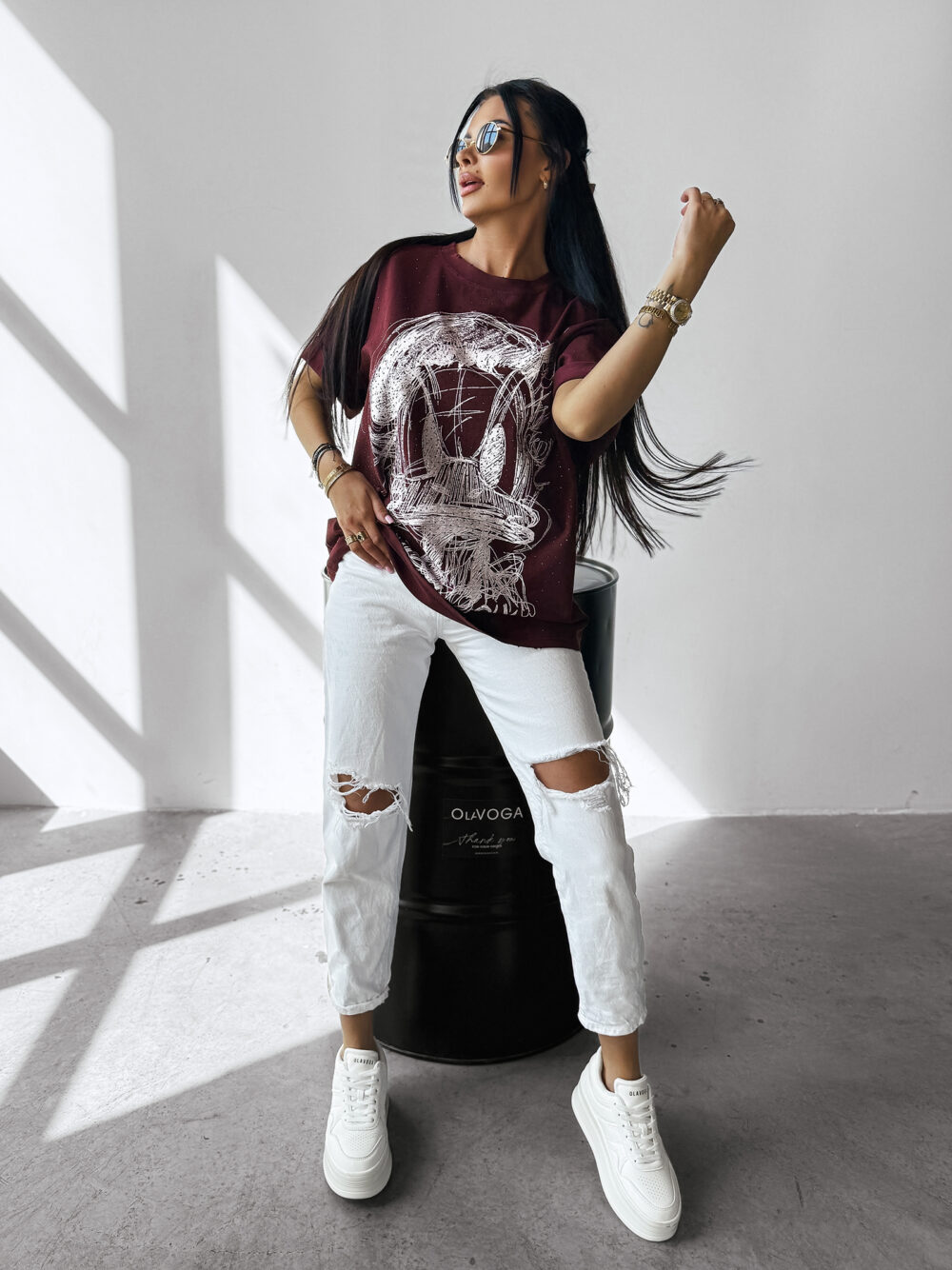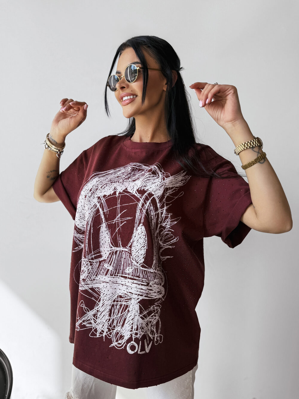 OLAVOGA MARA – t-shirt damski oversize z grafiką, logo i kryształkami