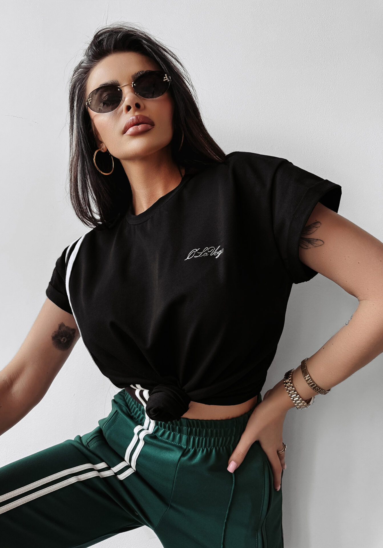 Klasyczny, a zarazem stylowy T-shirt RISCE OLAVOGA to propozycja dla kobiet ceniących wygodę i modny design. Model o taliowanym kroju, wykonany z elastycznej bawełny, perfekcyjnie dopasowuje się do sylwetki. Krótkie rękawy z subtelnym podwinięciem oraz haftowane logo OLAVOGA na przodzie dodają mu wyjątkowego charakteru. Podwójny lampas wzdłuż koszulki to oryginalny detal, który wyróżnia ten model na tle innych. Idealny na co dzień oraz do casualowych stylizacji z nutą elegancji