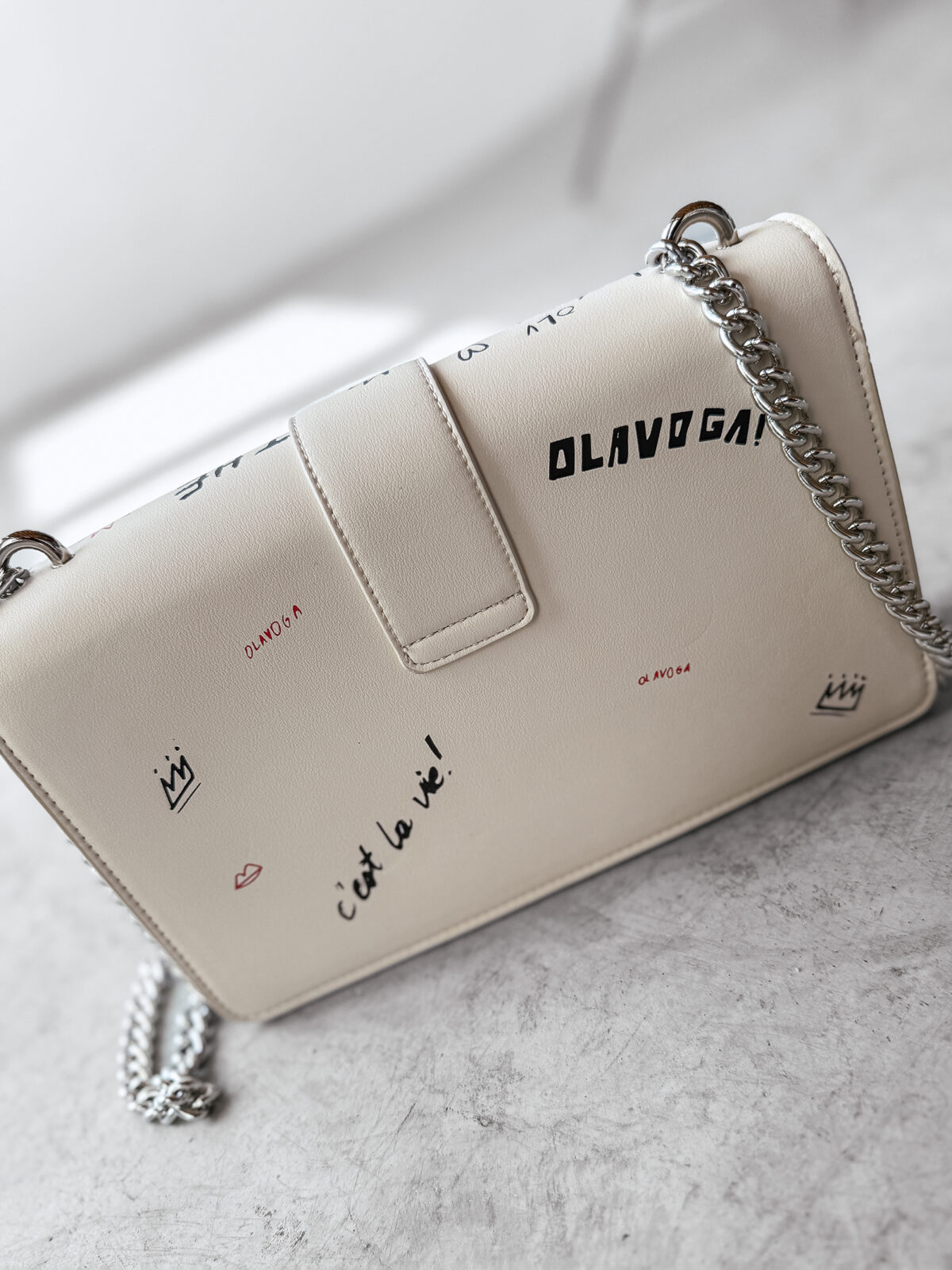 Łańcuszkowy pasek z wygodnym skórzanym panelem na ramię to kolejny atut – nie tylko pięknie się prezentuje, ale również zapewnia komfort noszenia nawet przez wiele godzin. Na panelu znajduje się dodatkowe tłoczenie z logo marki OLAVOGA, które podkreśla dbałość o każdy detal.