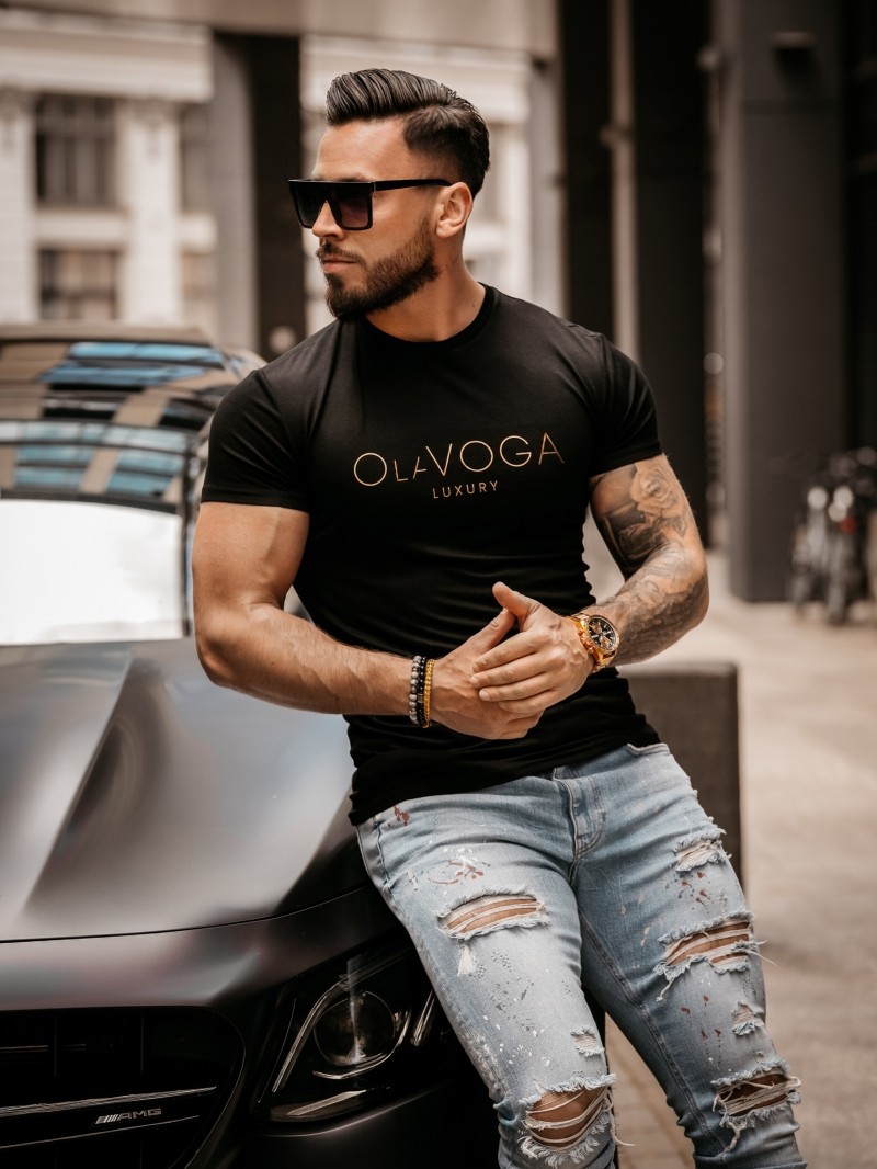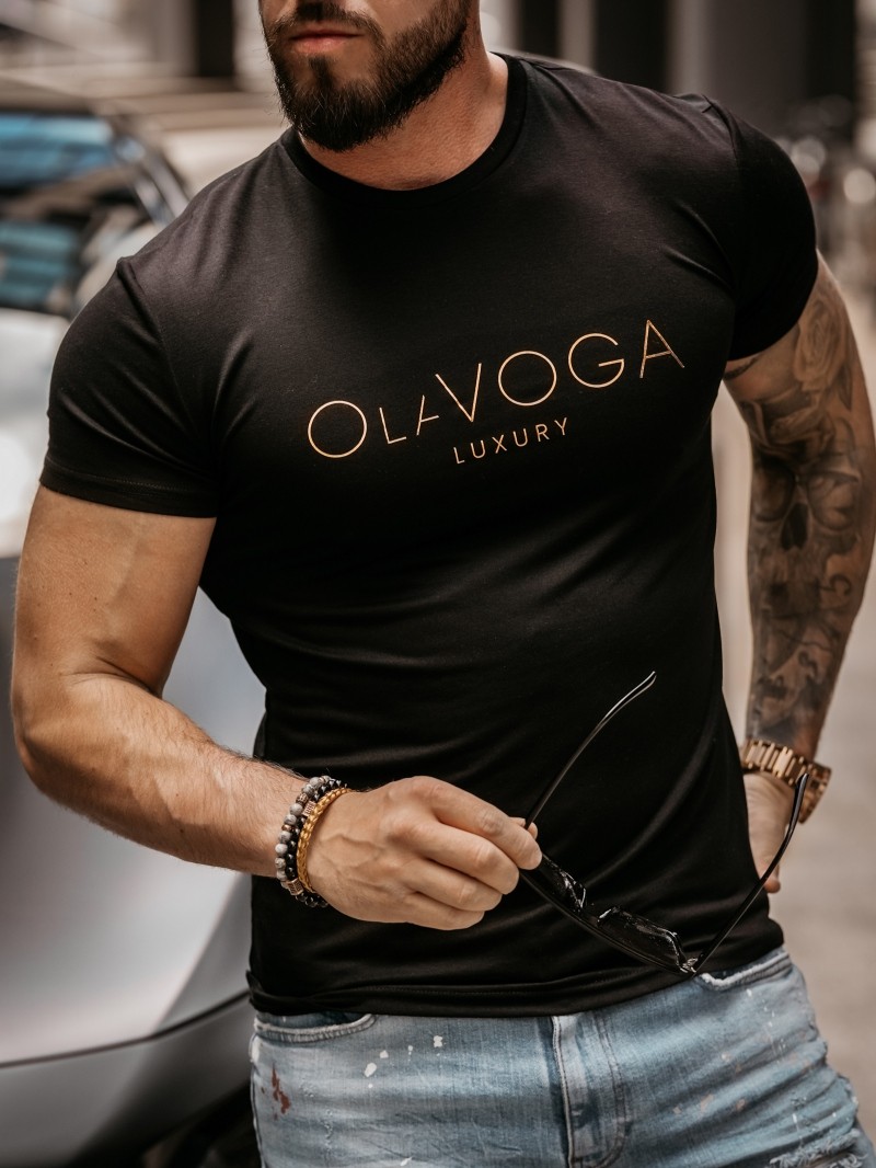 T-shirt męski OLAVOGA HUGO slim fit czarny – klasyka w luksusowym wydaniu