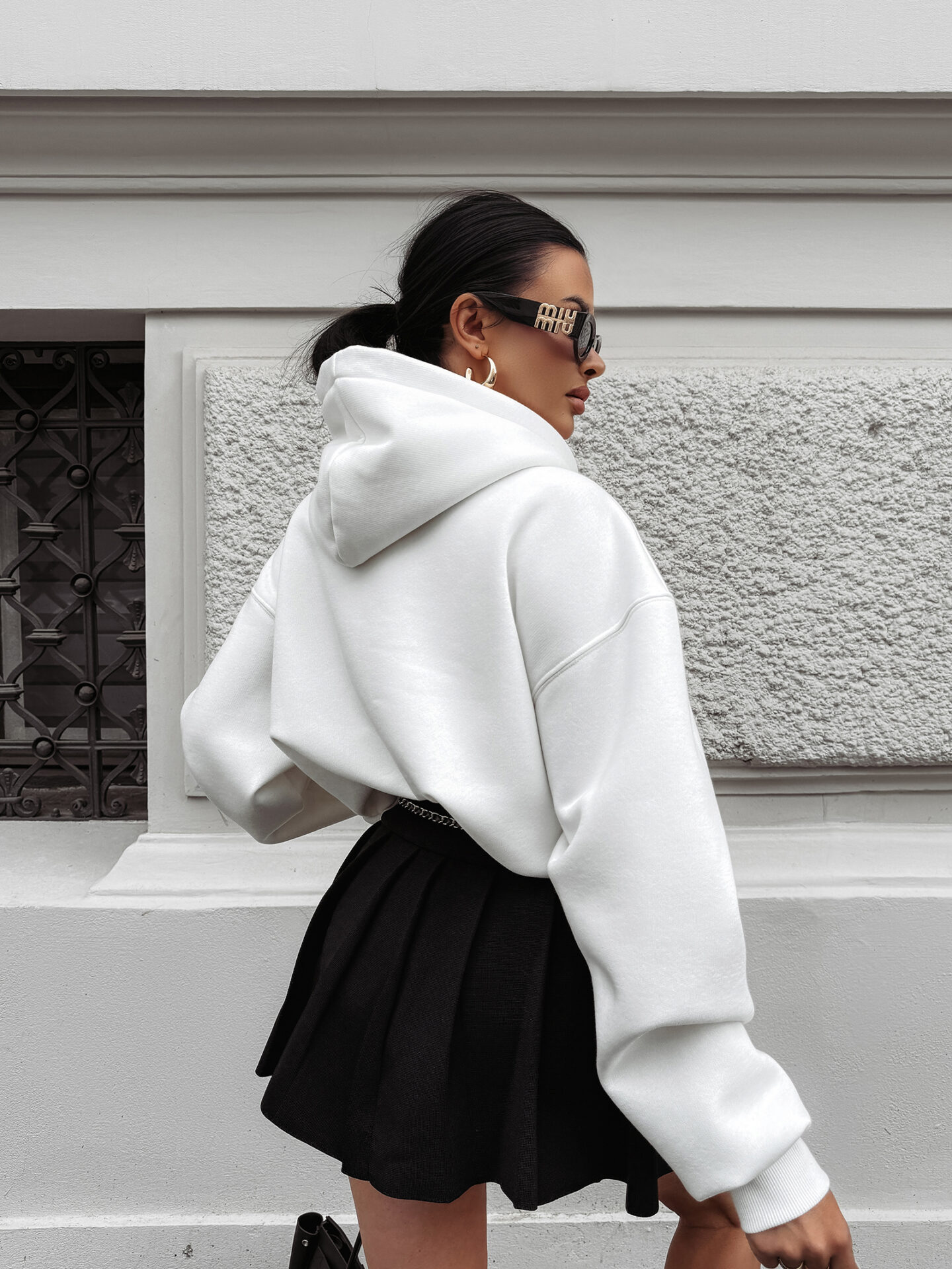 Fason oversize oraz dłuższy krój bluzy zapewniają komfort i swobodę ruchów, niezależnie od tego, czy nosisz ją w domowym zaciszu, podczas weekendowych wyjazdów czy w dynamicznym miejskim stylu. Luźna forma świetnie wygląda na różnych typach sylwetki – modeluje proporcje, maskuje niedoskonałości i jednocześnie nadaje stylizacji modowego charakteru.