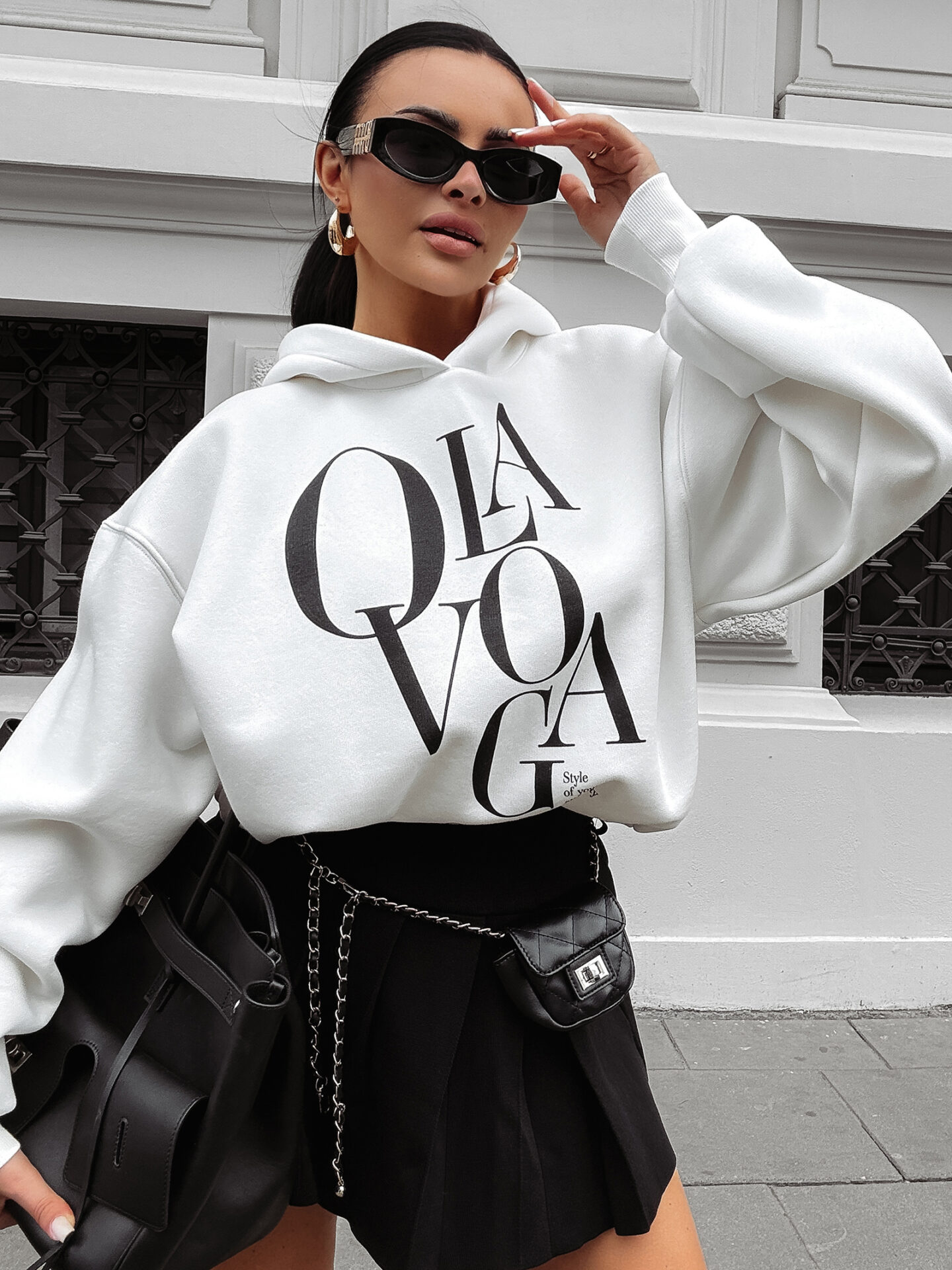 Na froncie bluzy umieszczono duże, kontrastowe logo OLAVOGA – mocny akcent, który dodaje charakteru i sprawia, że bluza sama w sobie staje się centralnym punktem stylizacji. Z kolei prążkowane ściągacze przy mankietach i u dołu bluzy zapewniają idealne wykończenie, utrzymując fason na miejscu i dodając funkcjonalności.