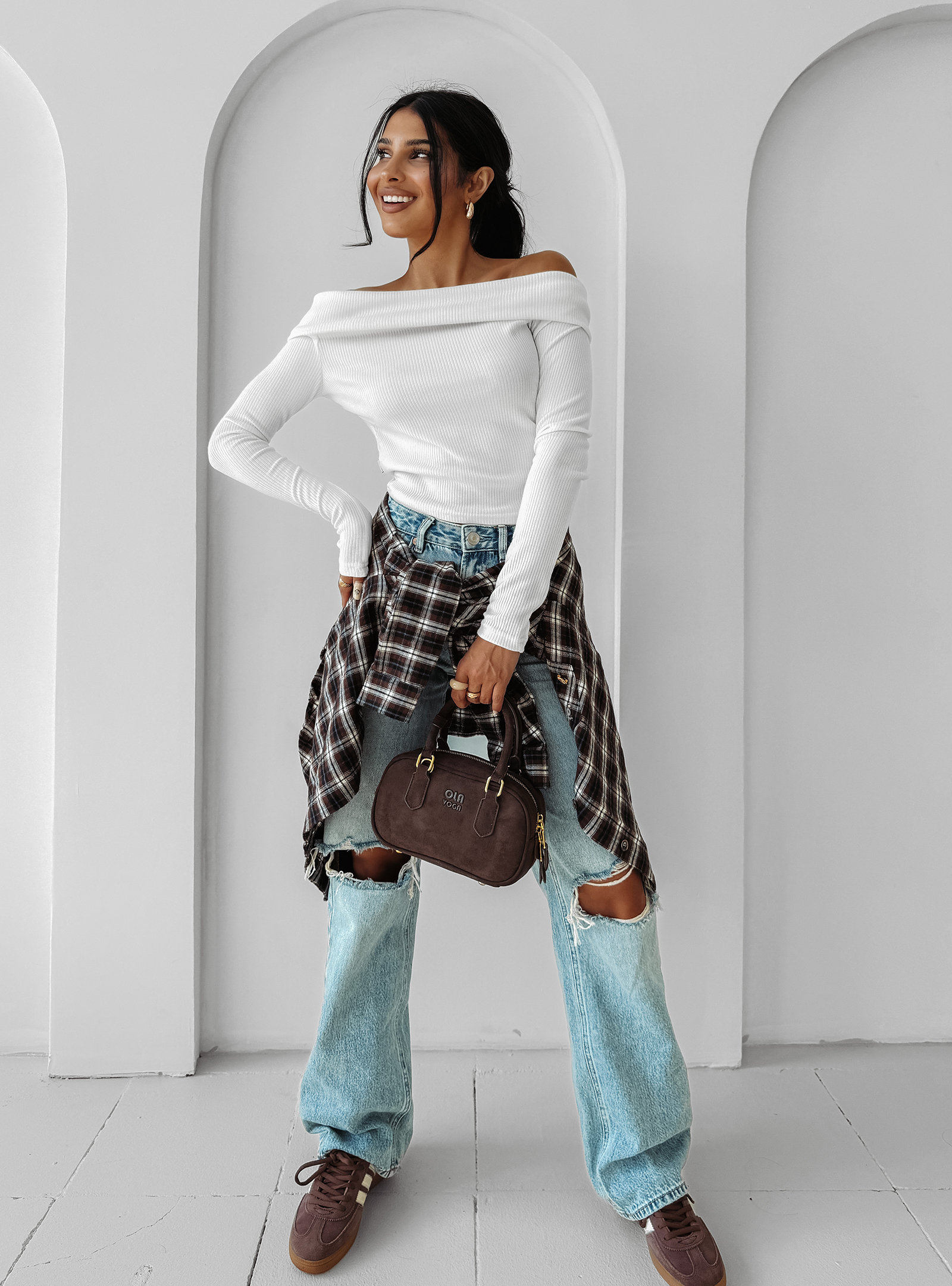 Projekt marki OLAVOGA łączy w sobie dopasowany krój z nowoczesnym twistem. Bluzka podkreśla linię ramion, eksponując je w wyrafinowany sposób. To świetna alternatywa dla klasycznych topów – bardziej elegancka, a przy tym niezwykle wygodna. Długi rękaw równoważy odkryte ramiona, tworząc spójną, stylową całość.