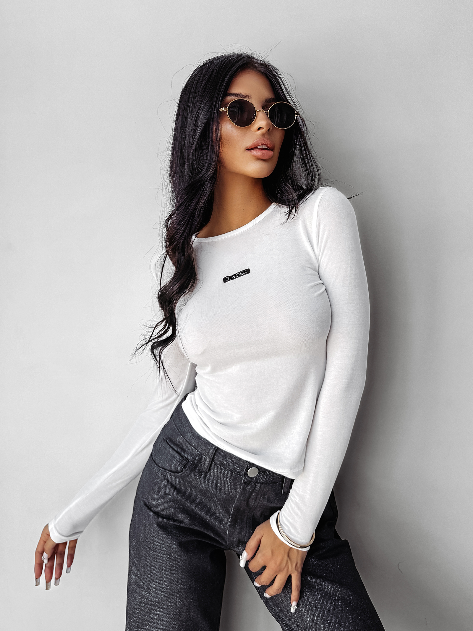 Z przodu bluzki znajduje się delikatna naszywka z logo OLAVOGA, która dodaje jej charakteru i sprawia, że model nabiera unikalnego, luksusowego wyglądu. To propozycja dla kobiet, które lubią subtelnie eksponować modowe wybory i sięgać po ubrania od sprawdzonych, renomowanych marek.