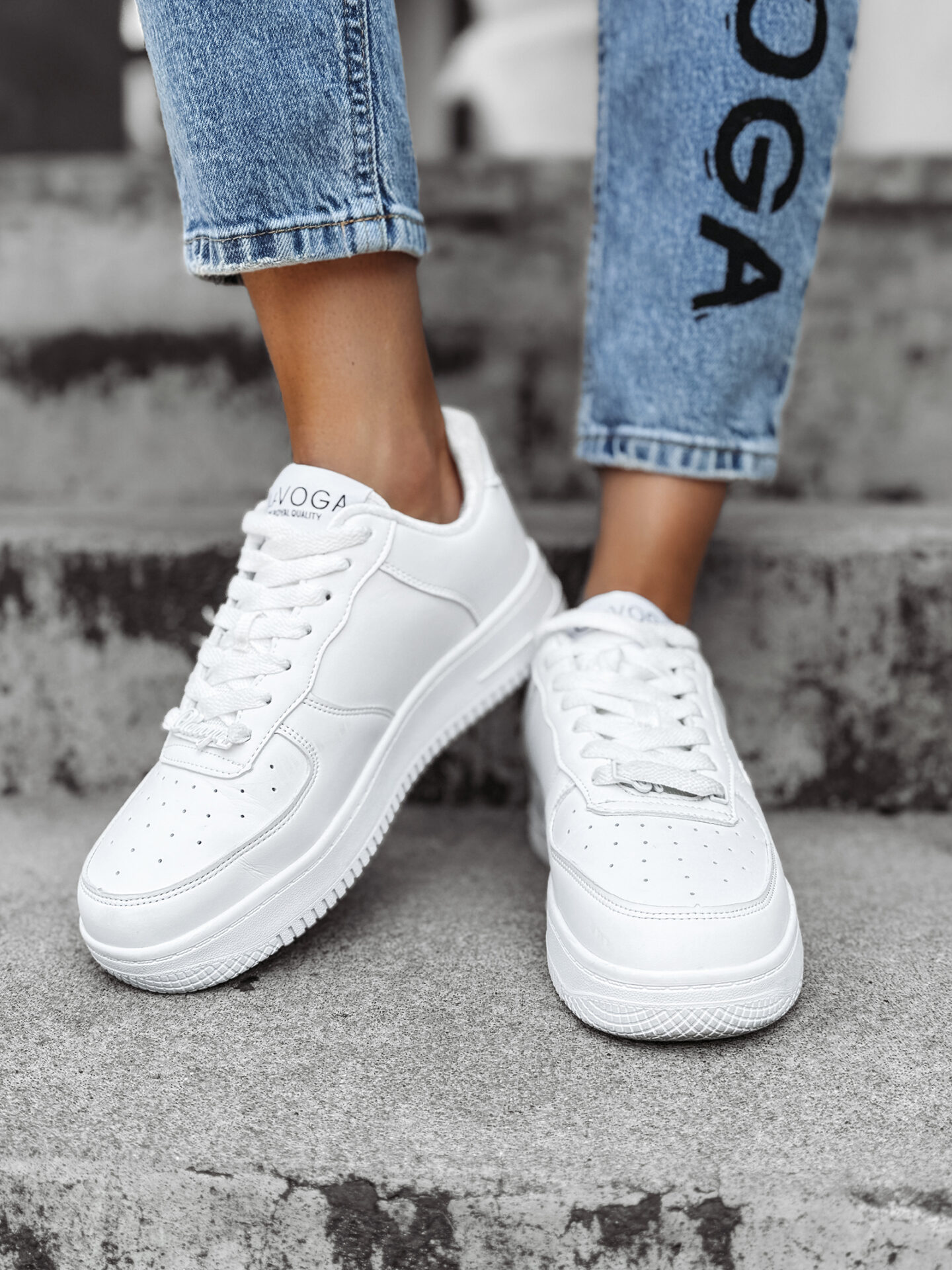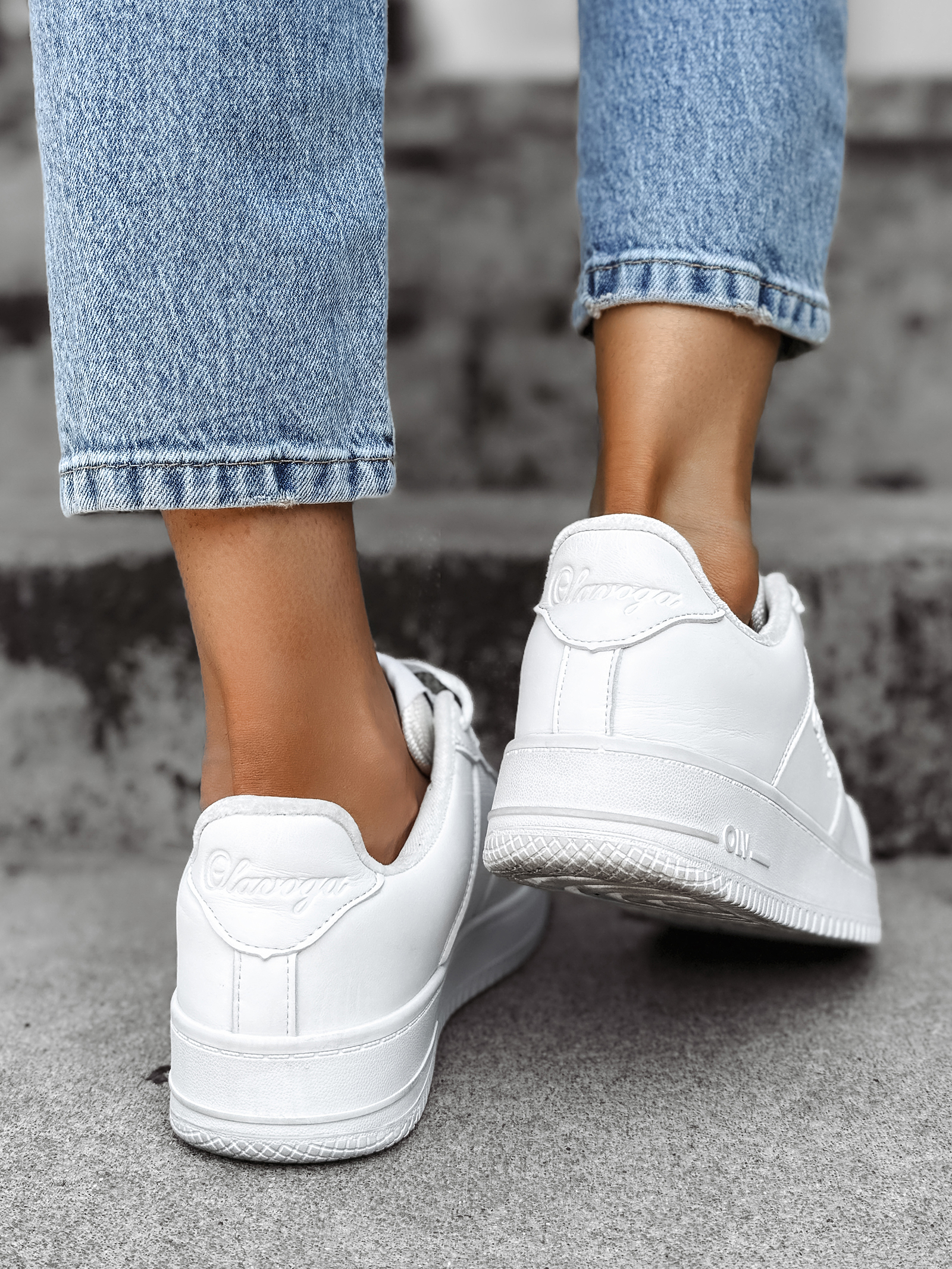 Sneakersy wykonano z matowego materiału o gładkim wykończeniu, który łatwo utrzymać w czystości i który świetnie współgra z nowoczesnym, minimalistycznym designem. Boczne panele, tył i język buta zdobi subtelne logo OLAVOGA, a metalowy detal na sznurowadłach dodaje całości charakteru i podkreśla streetwearowy vibe.