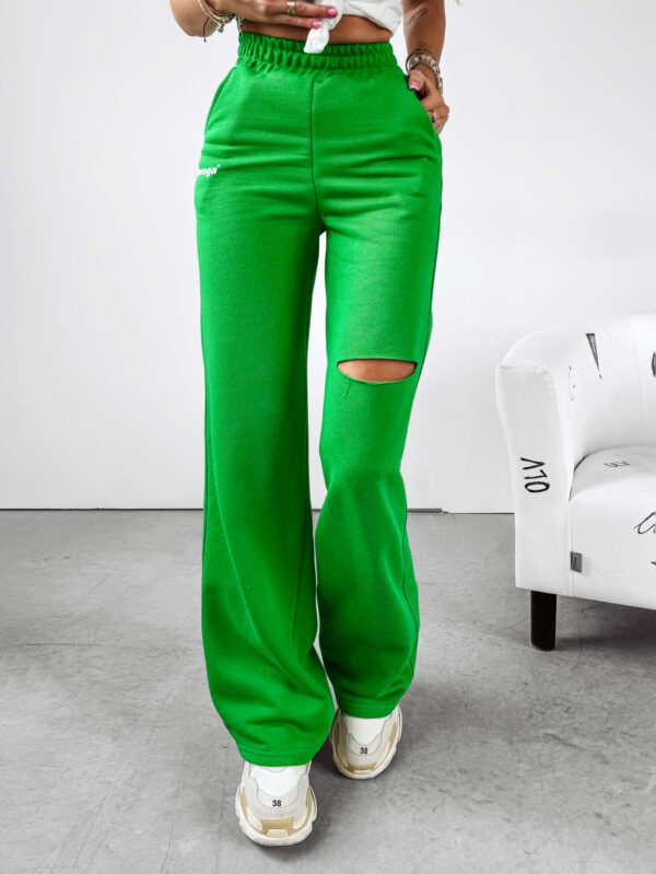 Spodnie sportowe Neimy to model dla Pań, które cenią sobie modę i wygodę. Mega modny krój, z rozszerzanymi nogawkami i lampasami po bokach i pionowymi przeszyciami, które optycznie wysmuklają sylwetkę. W pasie gumka ze sznurówką, dzięki czemu idealnie dopasowują się do sylwetki. Na przodzie minimalistyczne, kontrastowe logo OLA VOGA.
