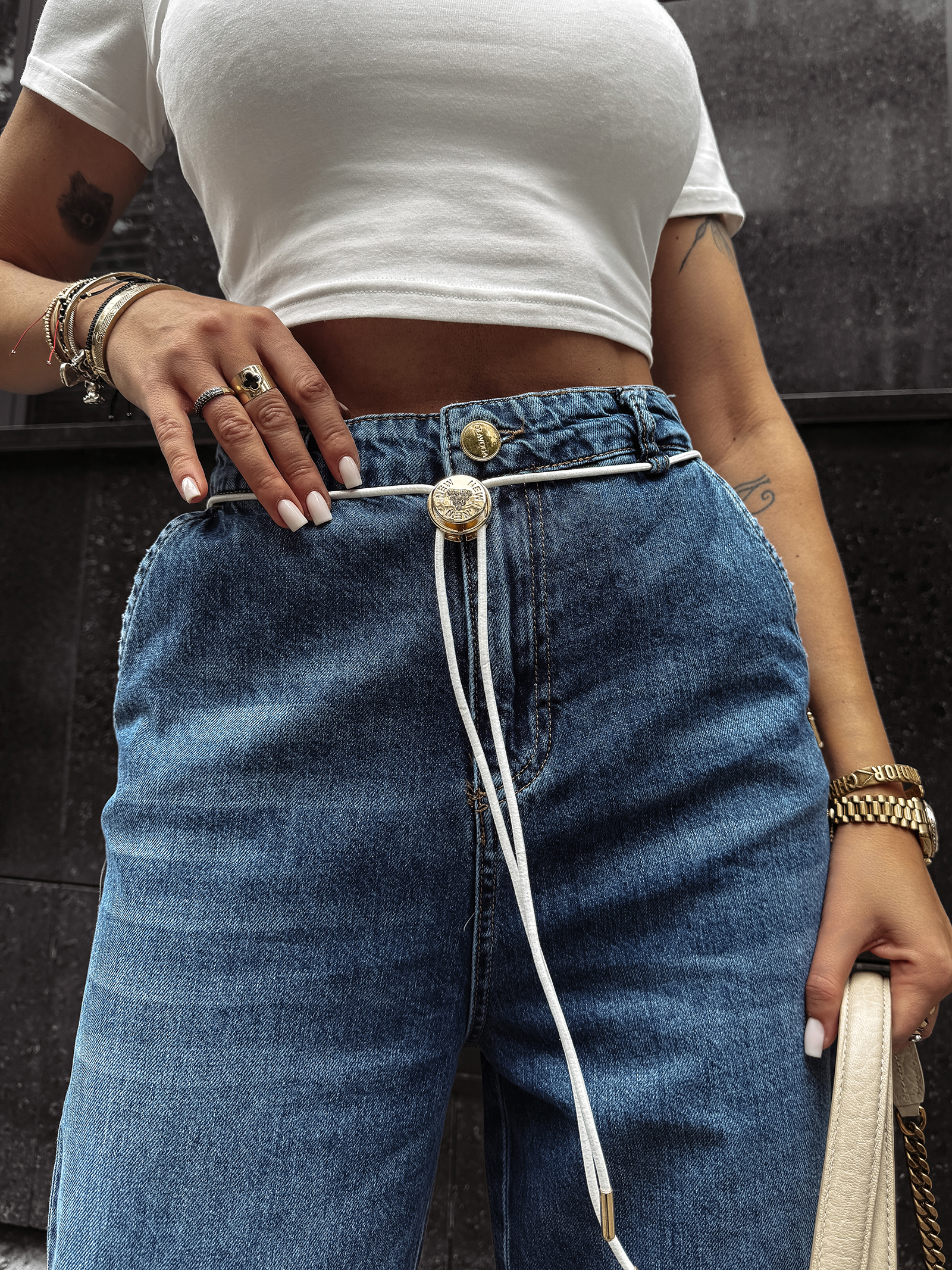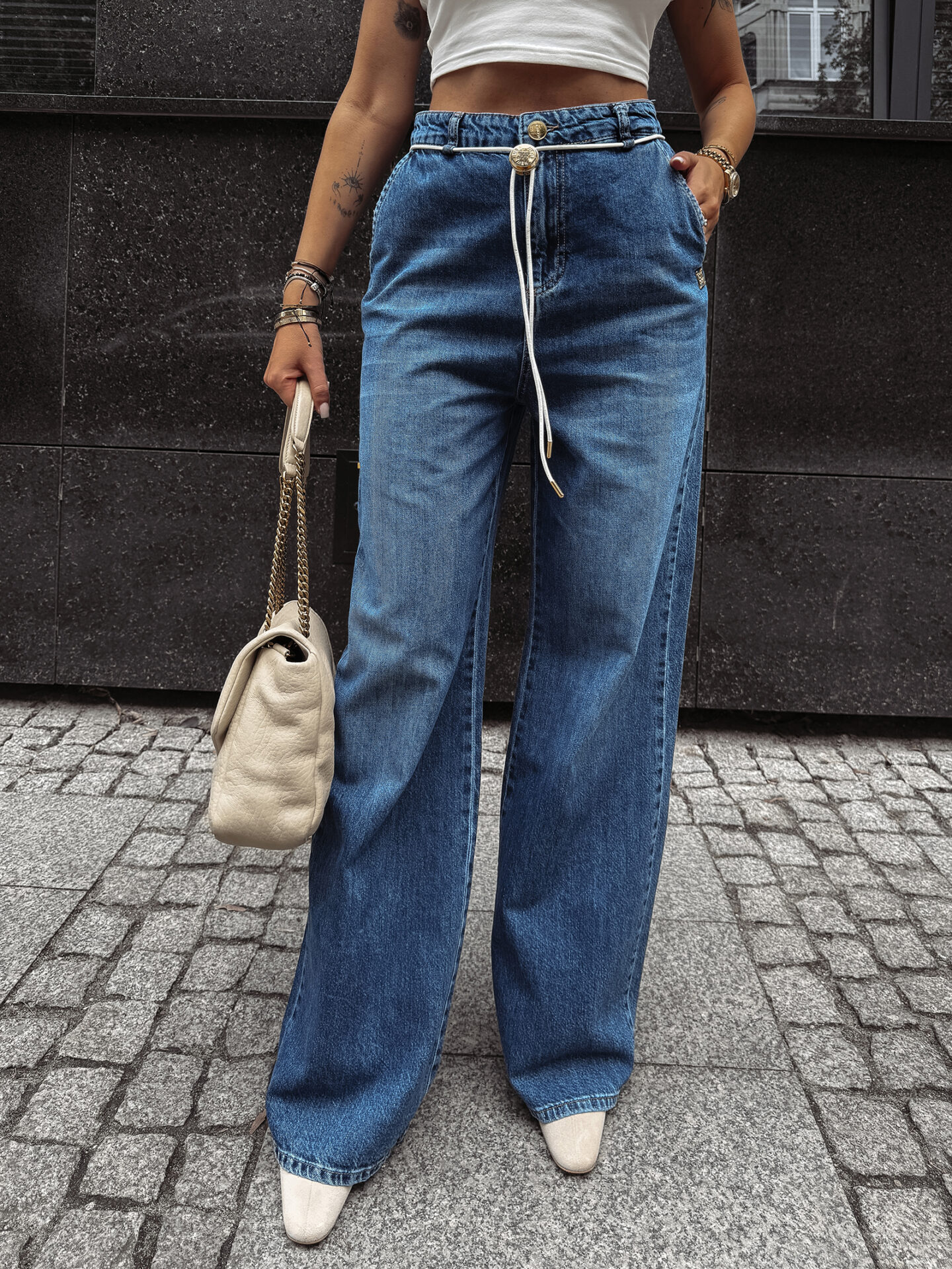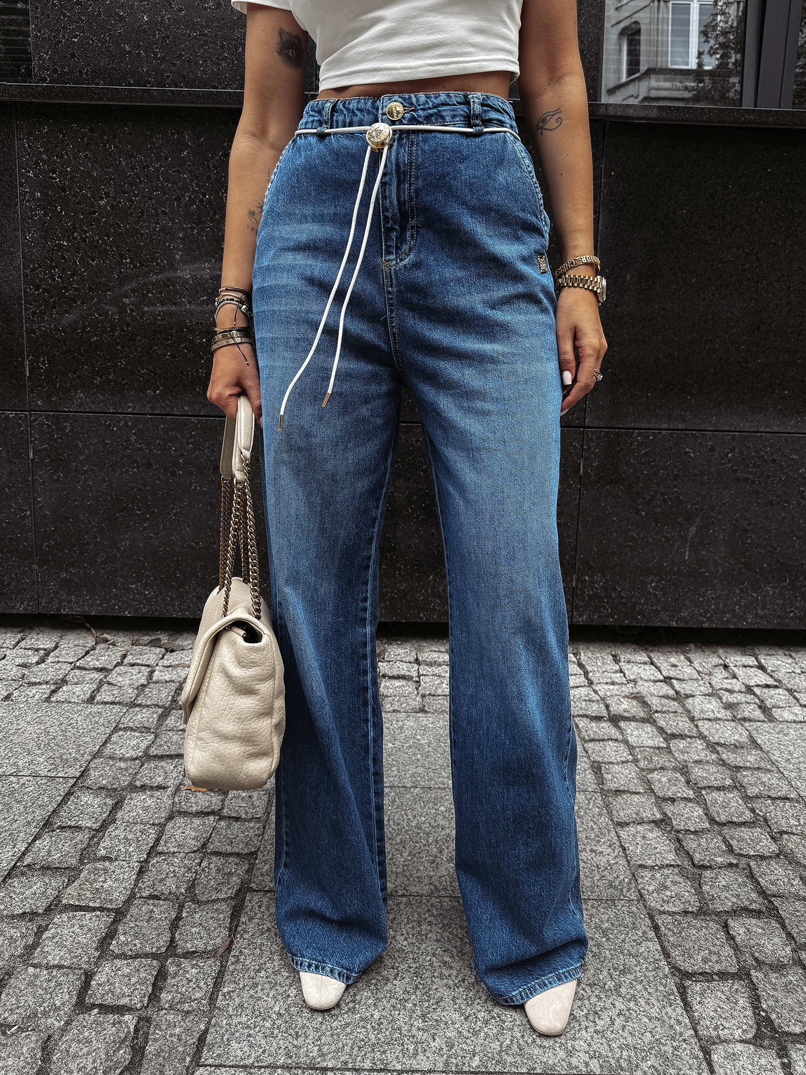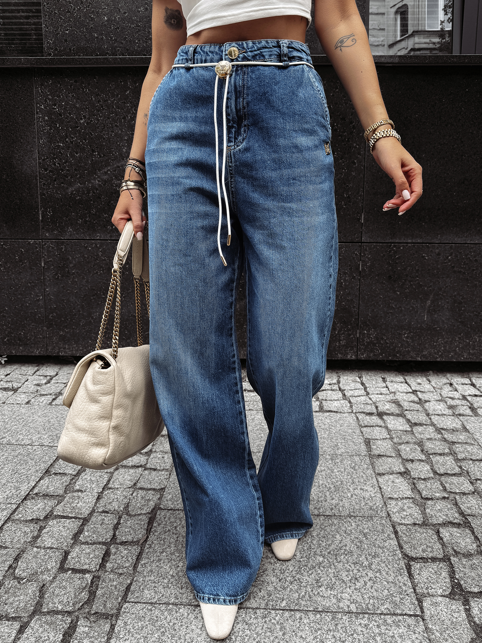 Ten model to kwintesencja nowoczesnej mody ulicznej. Baggy, czyli luźniejszy fason, doskonale maskuje niedoskonałości sylwetki, jednocześnie eksponując atuty dzięki podkreślonemu wysokiemu stanowi. To rozwiązanie idealne dla kobiet, które chcą łączyć wygodę z elegancją i nietuzinkowym designem.