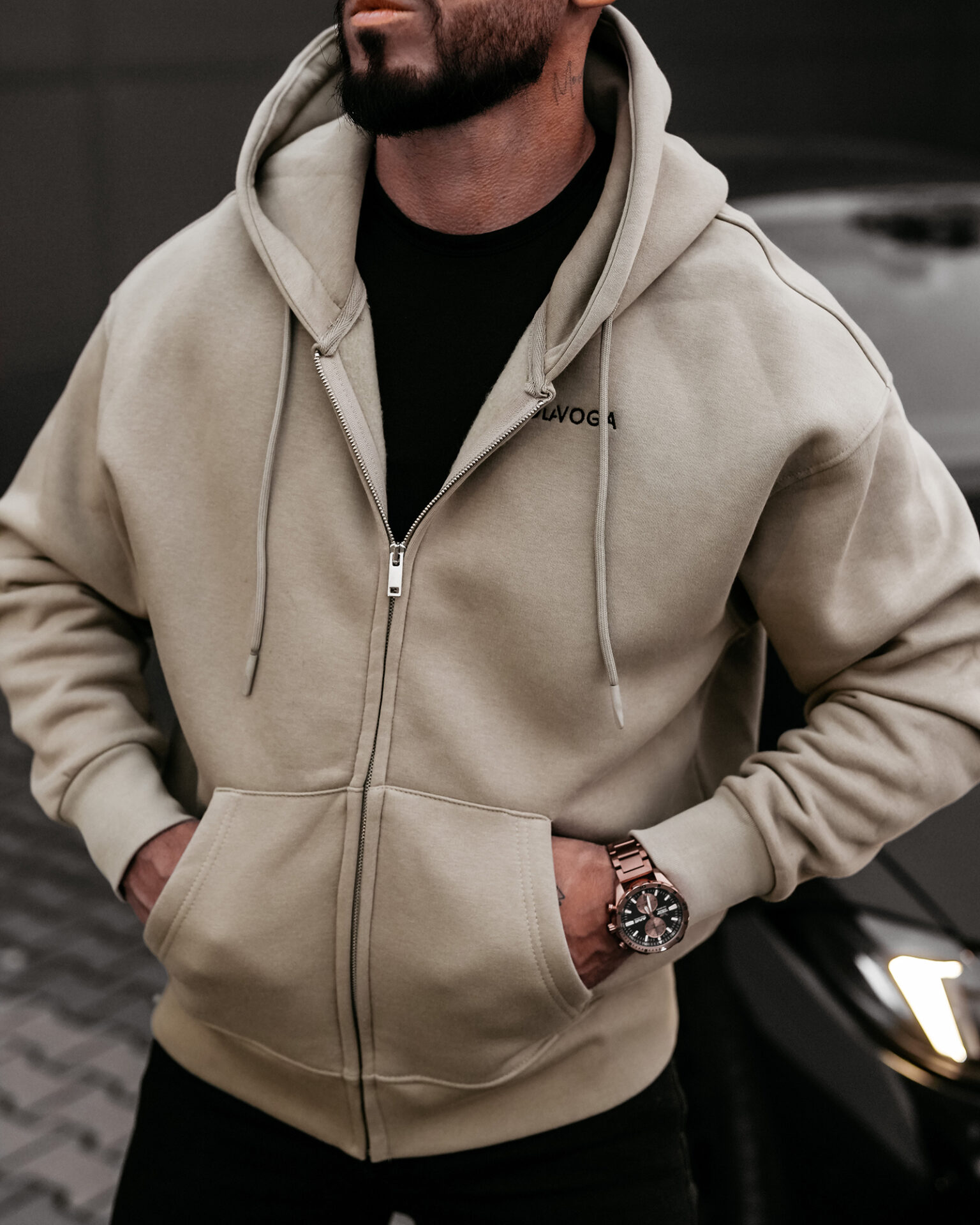 Bluza męska OLAVOGA EVLO oliwkowa to propozycja dla mężczyzny, który lubi modę w najlepszym wydaniu – prostą, dopracowaną i funkcjonalną. Wykonana z miękkiej, bawełnianej dzianiny o wysokiej gramaturze, łączy w sobie wygodę codziennego noszenia z estetyką premium. Jej rozpinany krój z kapturem sprawia, że doskonale sprawdzi się zarówno w miejskich stylizacjach, jak i w bardziej sportowych zestawieniach.