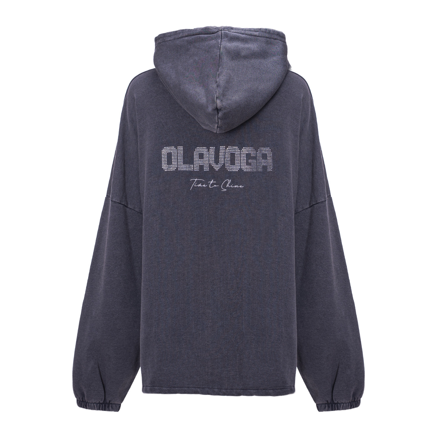 Bluza została wzbogacona o aplikację z drobnych kryształków, które układają się w logo OLAVOGA. To detal podkreślający charakter kolekcji premium, ponieważ nadaje zwykłemu dresowi nutę wyrafinowania. Regulacja w dolnej części bluzy pozwala perfekcyjnie dopasować fason do sylwetki, co sprawia, że model działa zarówno w stylizacjach swobodnych, jak i bardziej uporządkowanych.