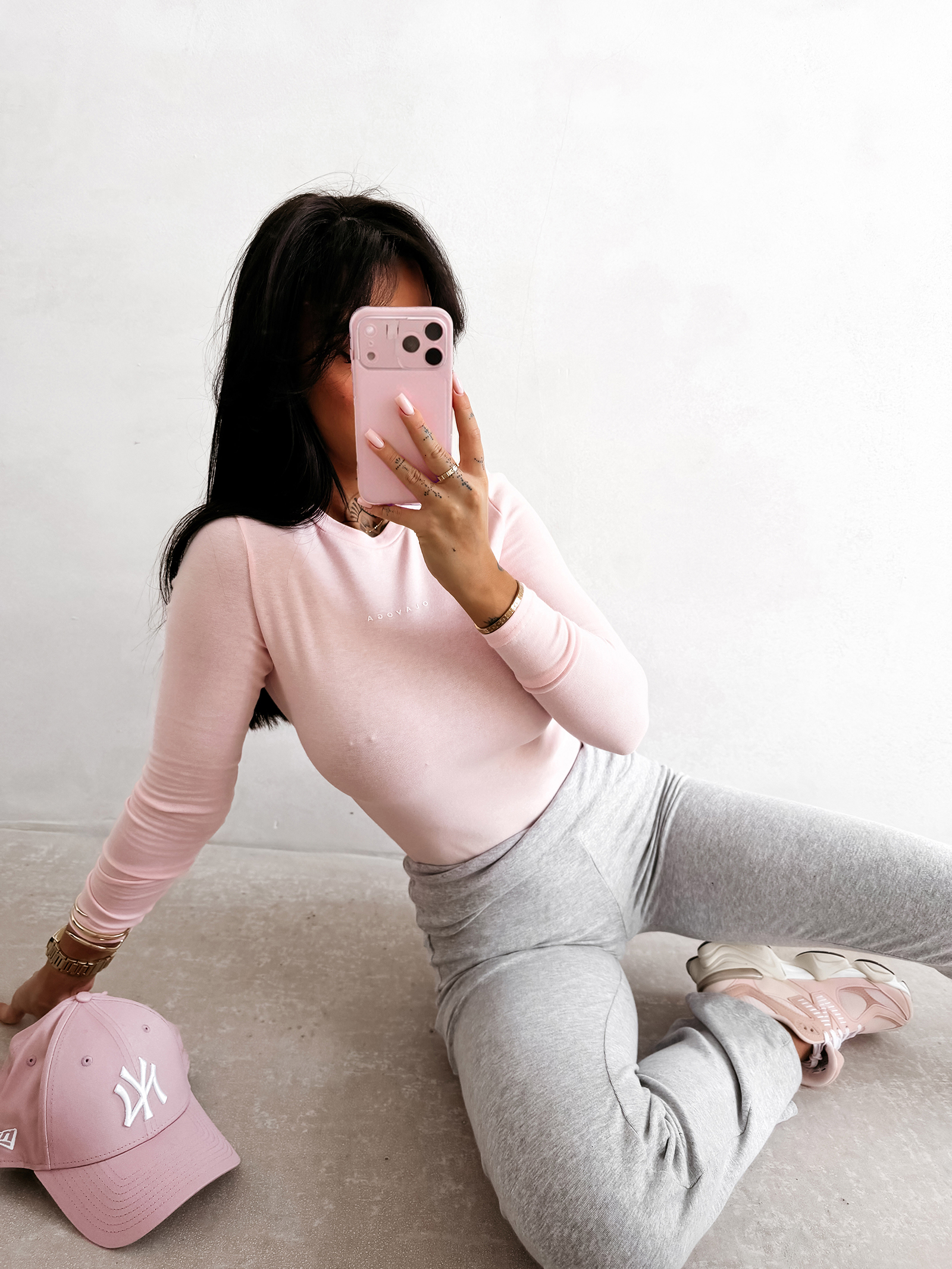 Bluzkę zdobi subtelne logo OLAVOGA umieszczone na przodzie. Element ten wprowadza do projektu elegancję, jednocześnie pozostając zgodnym z charakterem minimalistycznych stylizacji.