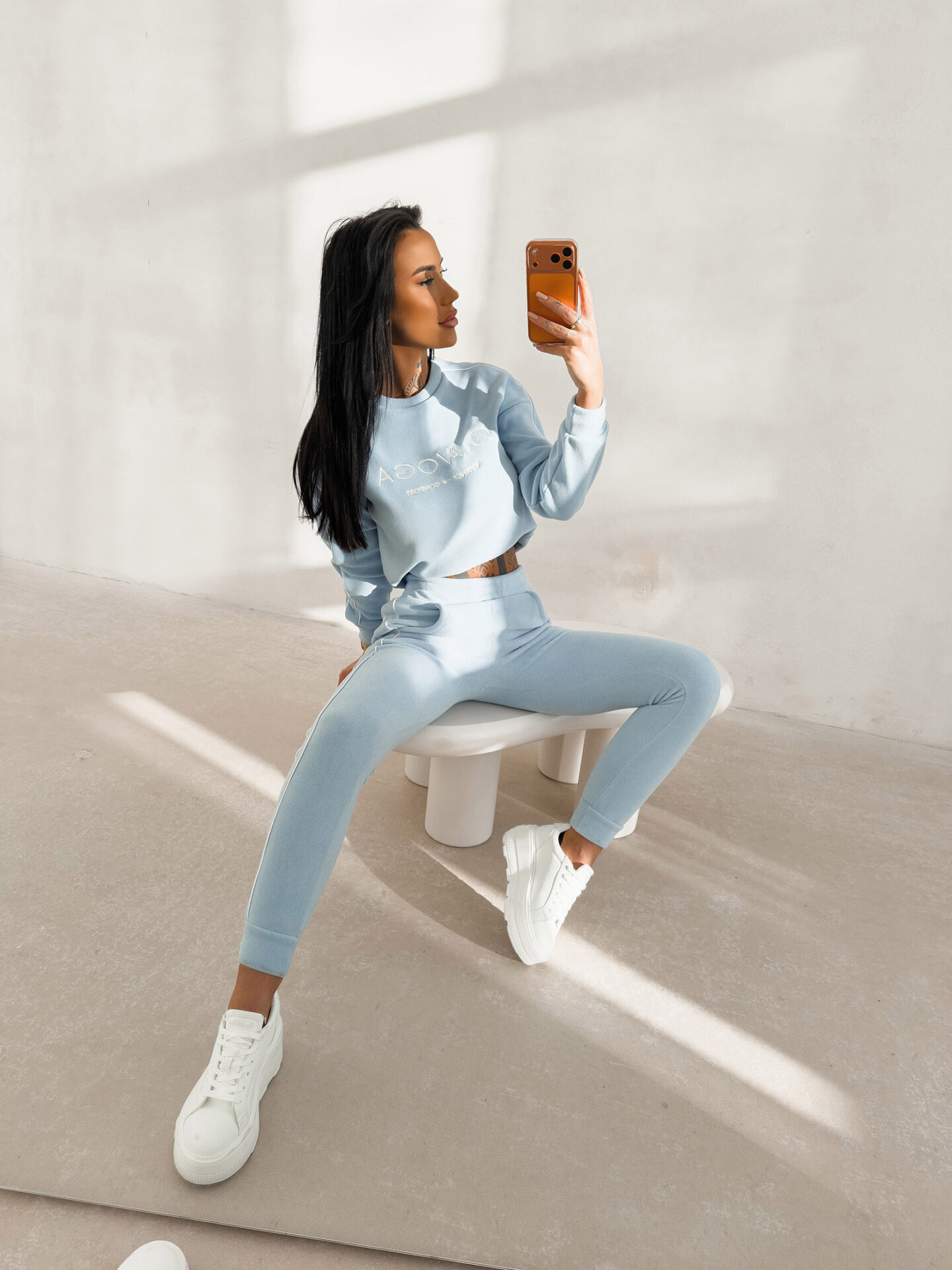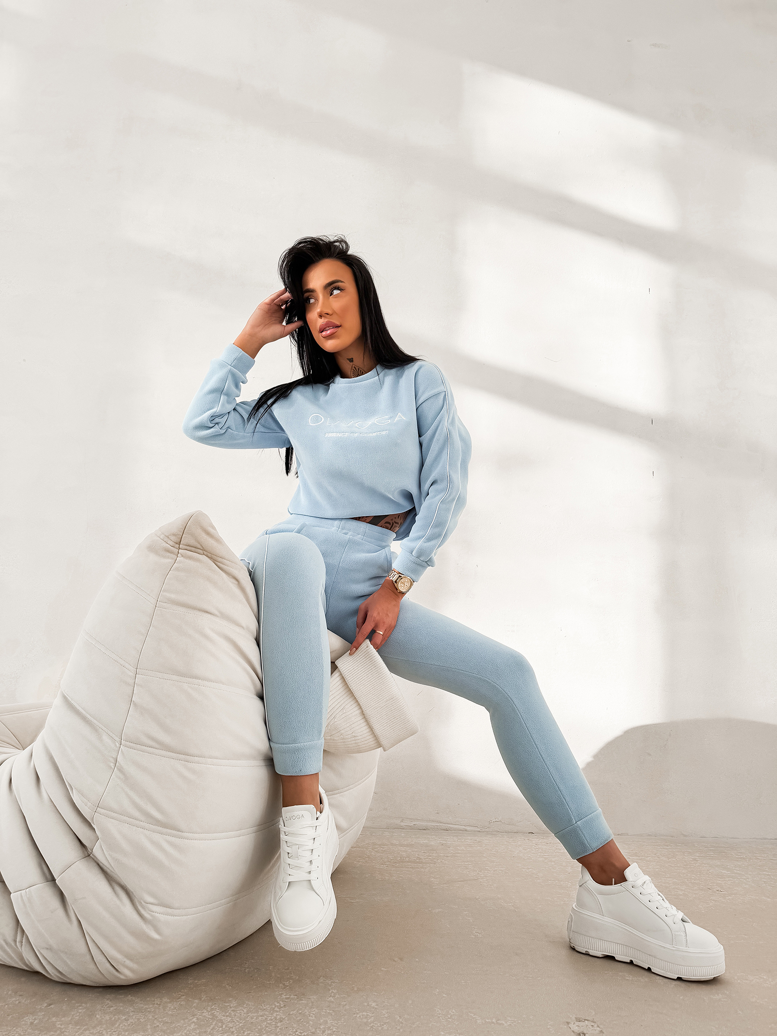 Komplet damski OLAVOGA LENTO został stworzony z myślą o codziennym użytkowaniu, wygodzie oraz uniwersalnym charakterze. Materiał typu polar jest miękki, ciepły i przyjemny dla skóry, co sprawia, że zestaw idealnie sprawdza się w chłodniejsze dni. Jednolita struktura tkaniny nadaje całości spokojny, estetyczny wygląd.