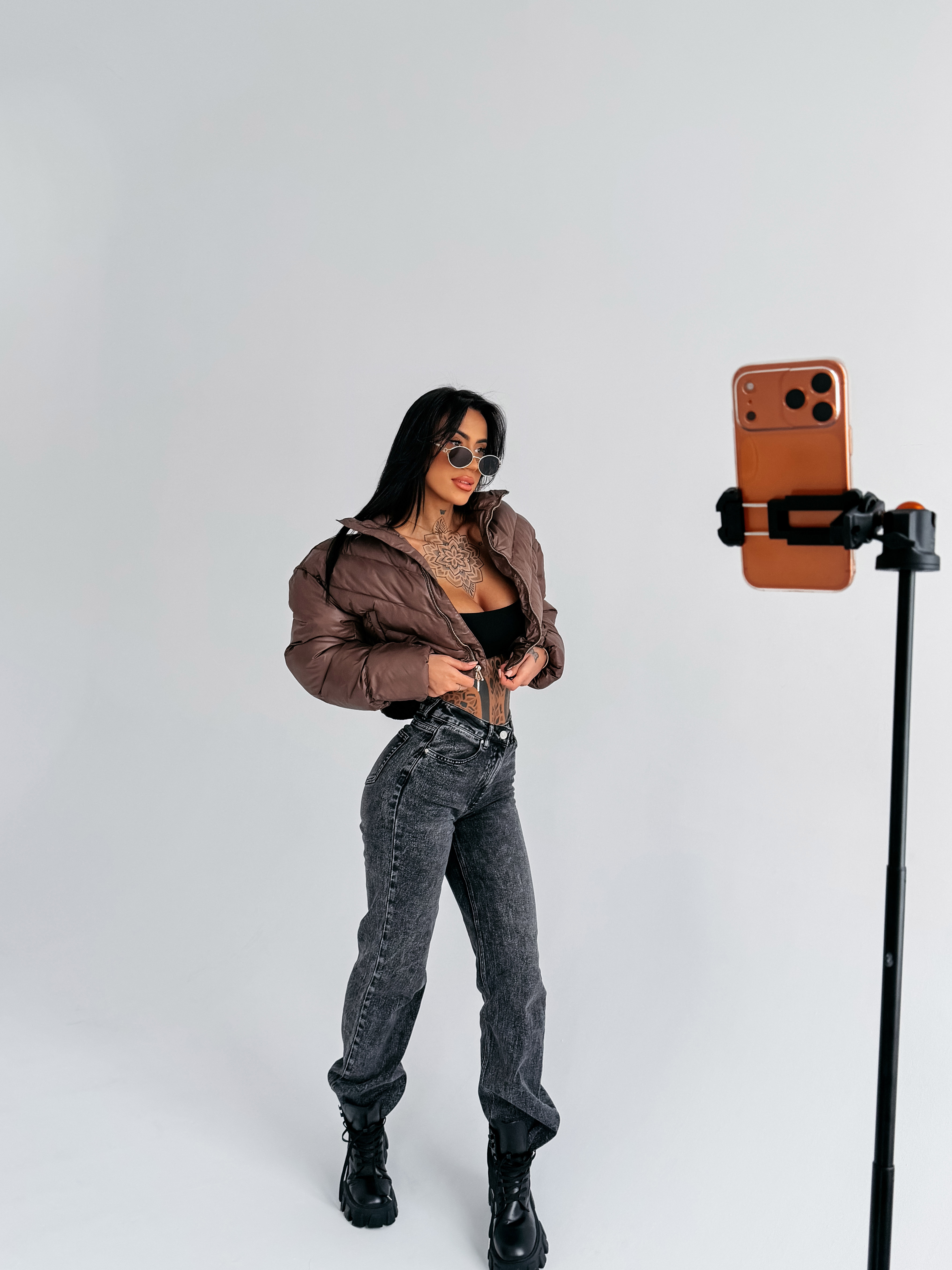 Lekko skrócony fason sprawia, że kurtka wygląda lekko i proporcjonalnie.