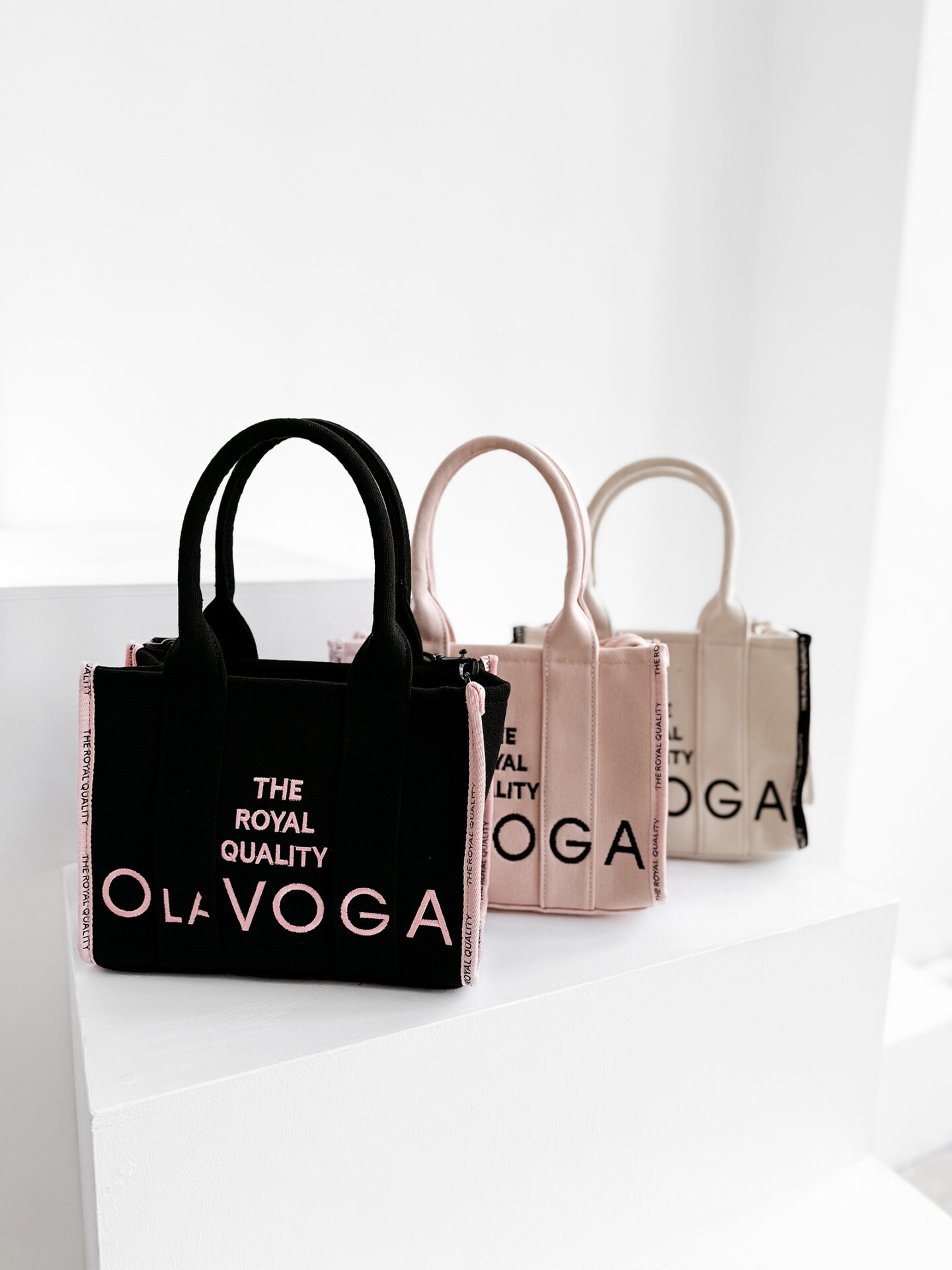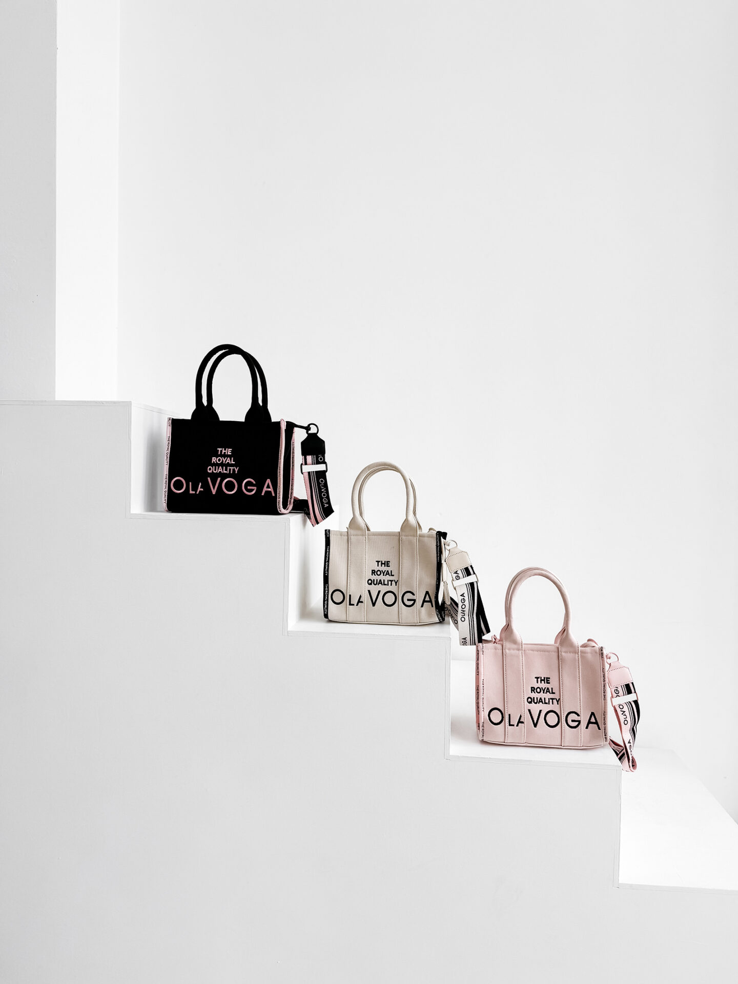 Gruba, dopracowana tkanina jest jednym z najważniejszych elementów torebki NALA. Materiał nadaje jej stabilną formę i pozwala utrzymać kształt nawet przy pełnym wypełnieniu. Dzięki temu torebka wygląda estetycznie w każdej sytuacji. Dodatkowym akcentem są kontrastowe taśmy z hasłem “THE ROYAL QUALITY”, które nadają modelowi luksusowy ton i podkreślają filozofię marki OLAVOGA.